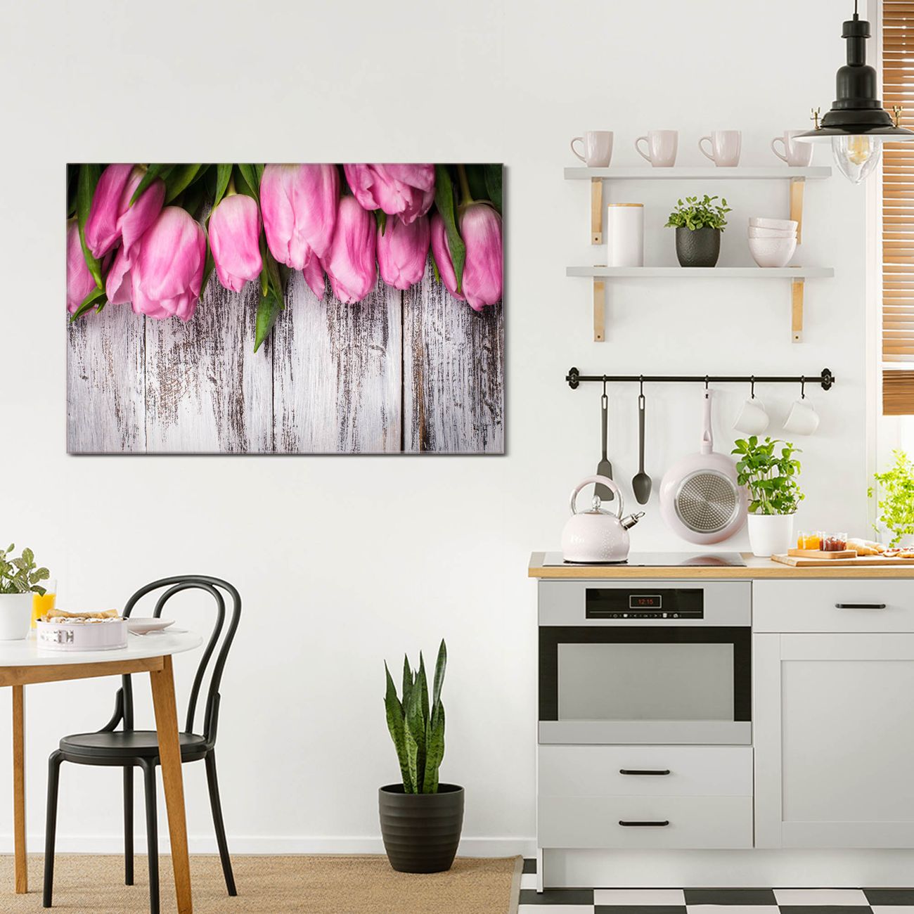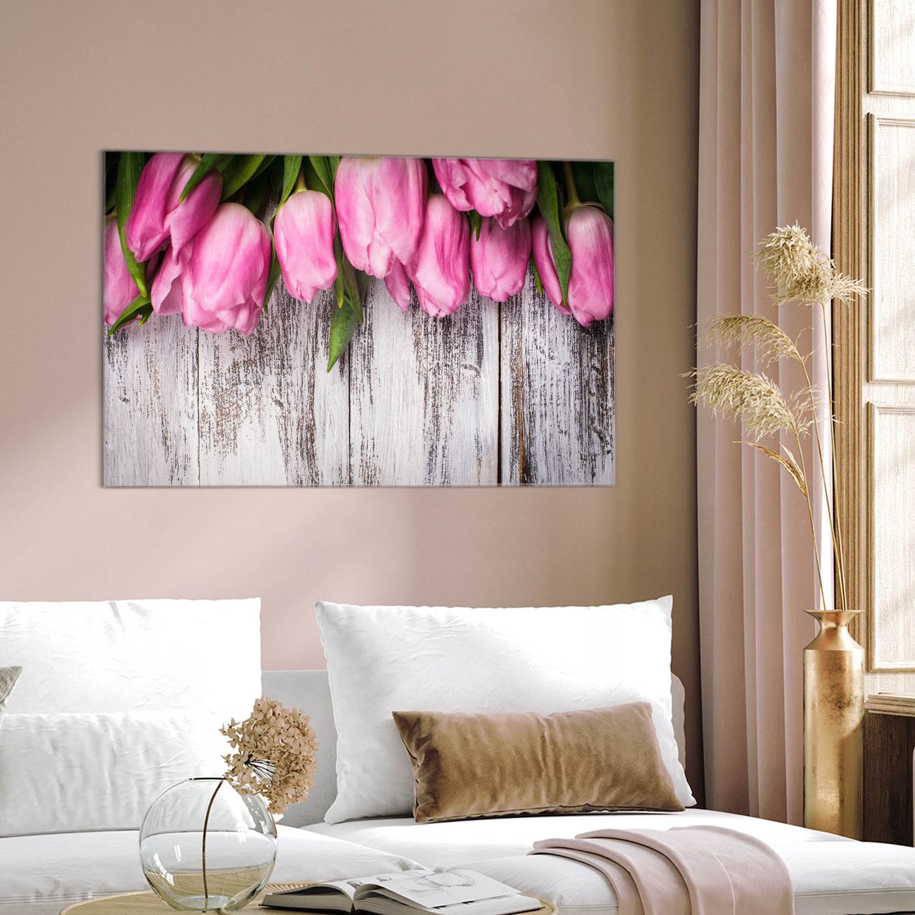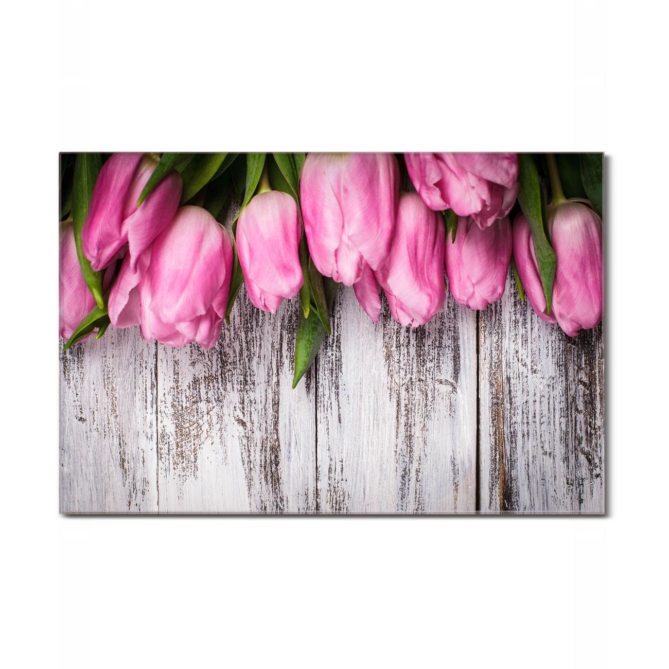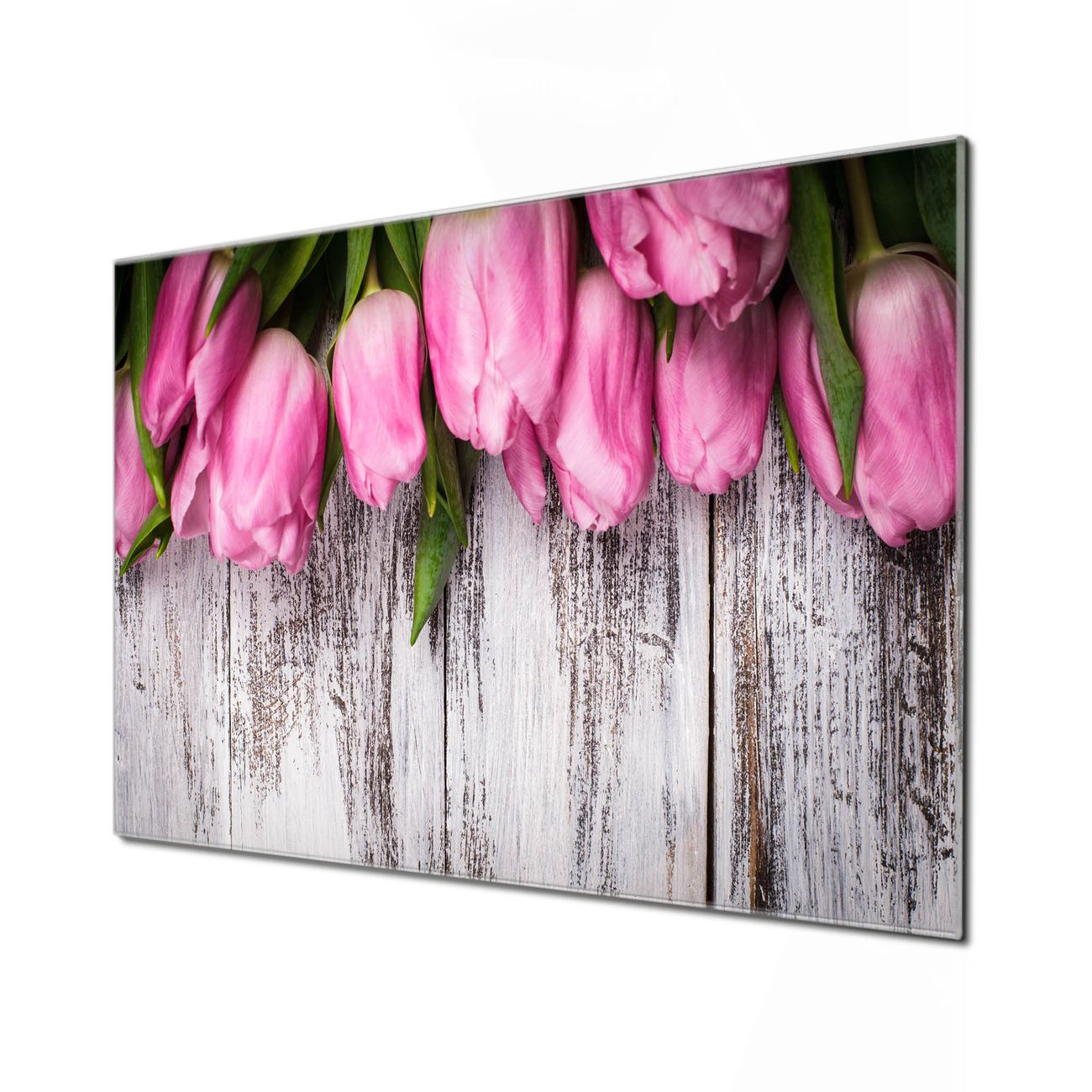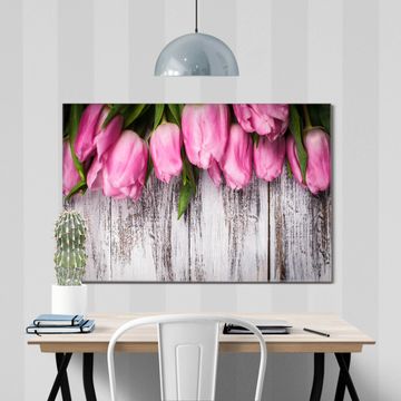 Einzigartiges Wandbild im Querformat Holz und Tulpen