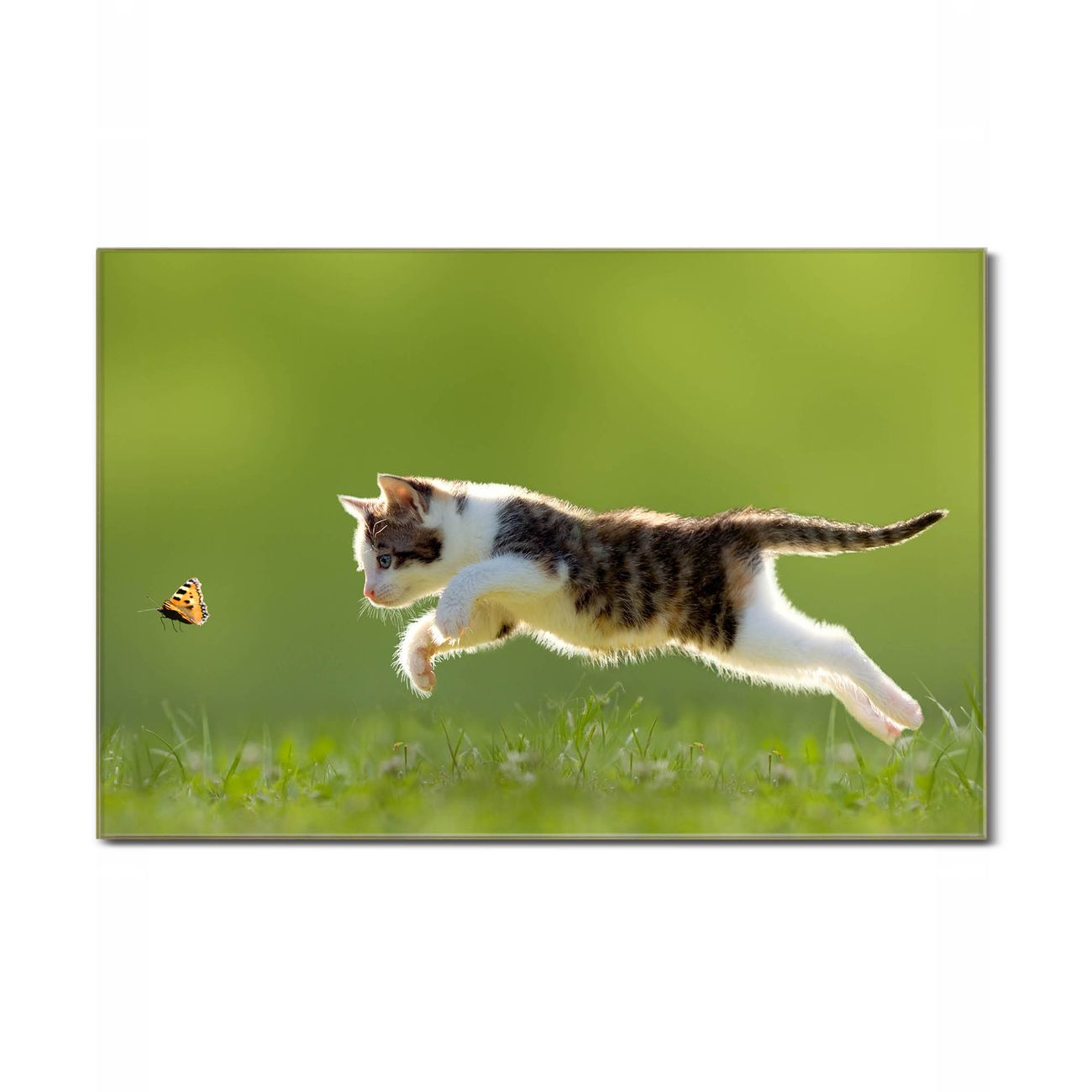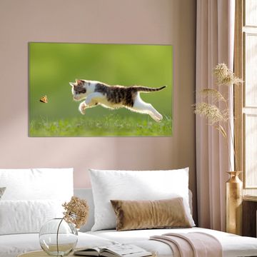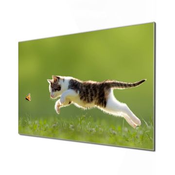 Unsere einzigartigen Glasbilder im Querformat von banjado mit Motiv Jagende Katze sind der absolute Hingucker! Unsere Banjado Glasbilder sind sehr begehrt, weil sie top verarbeitet sind und sich ganz leicht montieren lassen. Schon mit wenigen Handgriffen hängen sie an der Wand und strahlen mit höchster brillianz. Durch die Ramenlose Herstellung schwebt das Echtglasbild förmlich an der Wand. Das Motiv erscheint besonders ausdrucksstark und hochwertig und ist hinter dem Echtglas geschützt.