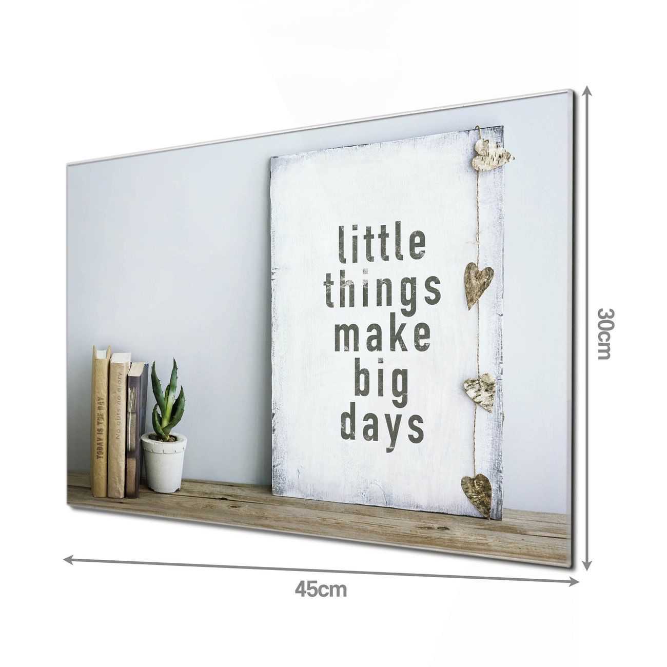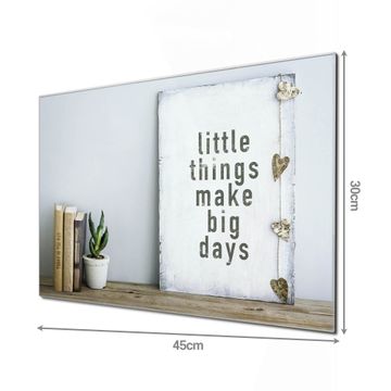 Unsere einzigartigen Glasbilder im Querformat von banjado mit Motiv Little Things sind der absolute Hingucker! Unsere Banjado Glasbilder sind sehr begehrt, weil sie top verarbeitet sind und sich ganz leicht montieren lassen. Schon mit wenigen Handgriffen hängen sie an der Wand und strahlen mit höchster brillianz. Durch die Ramenlose Herstellung schwebt das Echtglasbild förmlich an der Wand. Das Motiv erscheint besonders ausdrucksstark und hochwertig und ist hinter dem Echtglas geschützt.