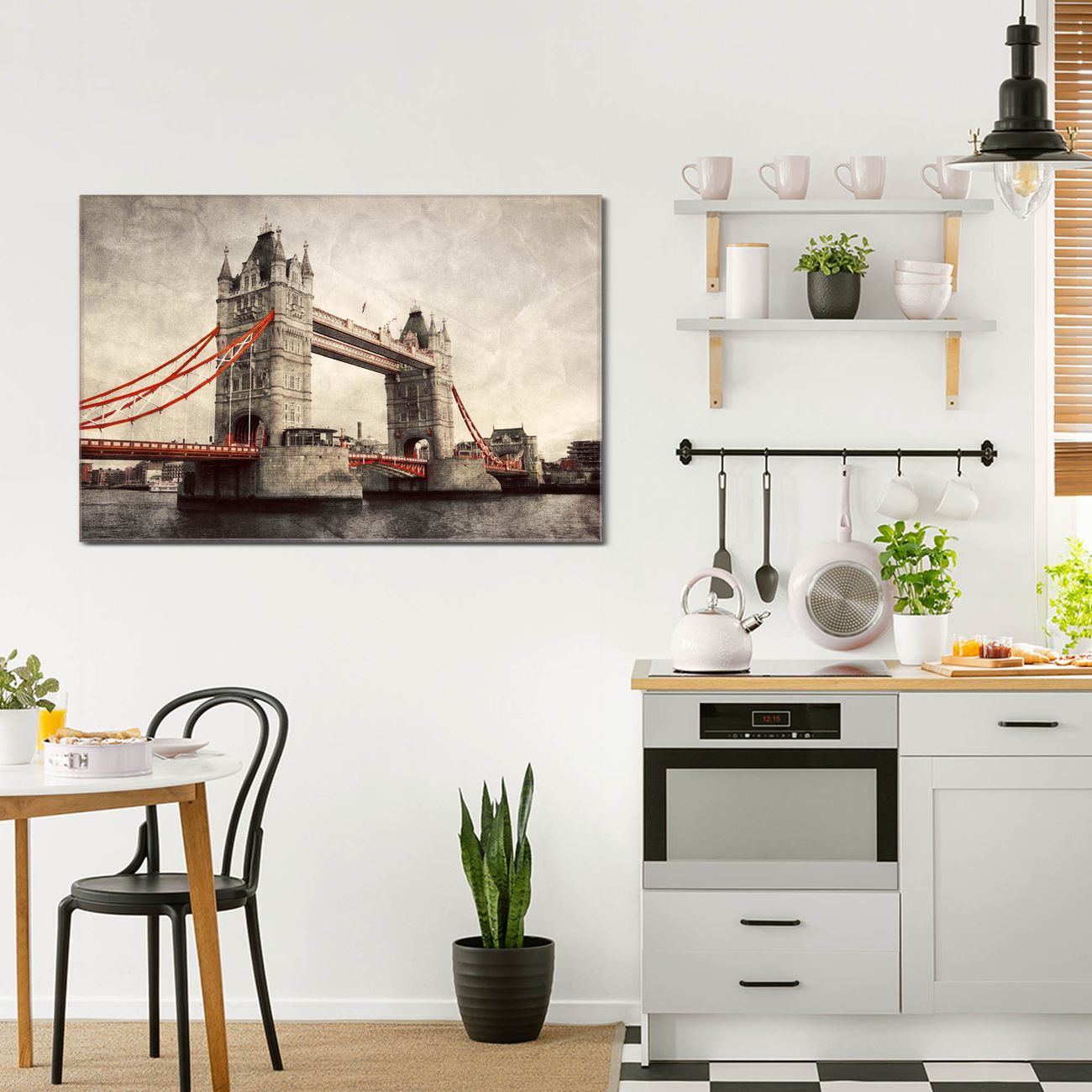 Unsere einzigartigen Glasbilder im Querformat von banjado mit Motiv London Bridge sind der absolute Hingucker! Unsere Banjado Glasbilder sind sehr begehrt, weil sie top verarbeitet sind und sich ganz leicht montieren lassen. Schon mit wenigen Handgriffen hängen sie an der Wand und strahlen mit höchster brillianz. Durch die Ramenlose Herstellung schwebt das Echtglasbild förmlich an der Wand. Das Motiv erscheint besonders ausdrucksstark und hochwertig und ist hinter dem Echtglas geschützt.
