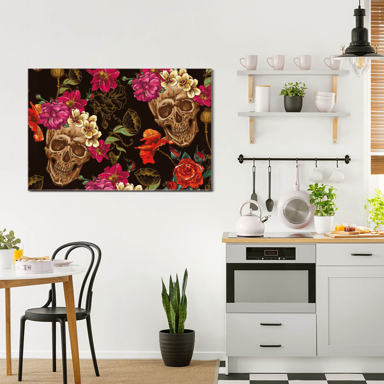 Unsere einzigartigen Glasbilder im Querformat von banjado mit Motiv Los Dias de Muertos sind der absolute Hingucker! Unsere Banjado Glasbilder sind sehr begehrt, weil sie top verarbeitet sind und sich ganz leicht montieren lassen. Schon mit wenigen Handgriffen hängen sie an der Wand und strahlen mit höchster brillianz. Durch die Ramenlose Herstellung schwebt das Echtglasbild förmlich an der Wand. Das Motiv erscheint besonders ausdrucksstark und hochwertig und ist hinter dem Echtglas geschützt.