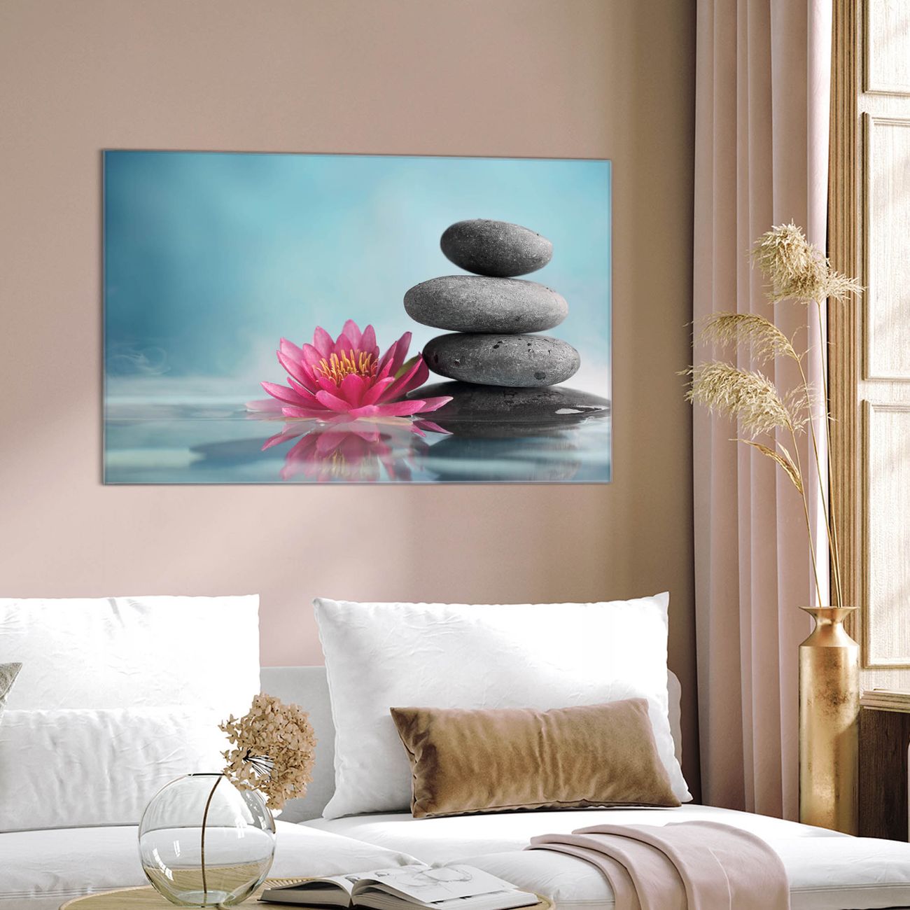Unsere einzigartigen Glasbilder im Querformat von banjado mit Motiv Lotus Und Steine sind der absolute Hingucker! Unsere Banjado Glasbilder sind sehr begehrt, weil sie top verarbeitet sind und sich ganz leicht montieren lassen. Schon mit wenigen Handgriffen hängen sie an der Wand und strahlen mit höchster brillianz. Durch die Ramenlose Herstellung schwebt das Echtglasbild förmlich an der Wand. Das Motiv erscheint besonders ausdrucksstark und hochwertig und ist hinter dem Echtglas geschützt.