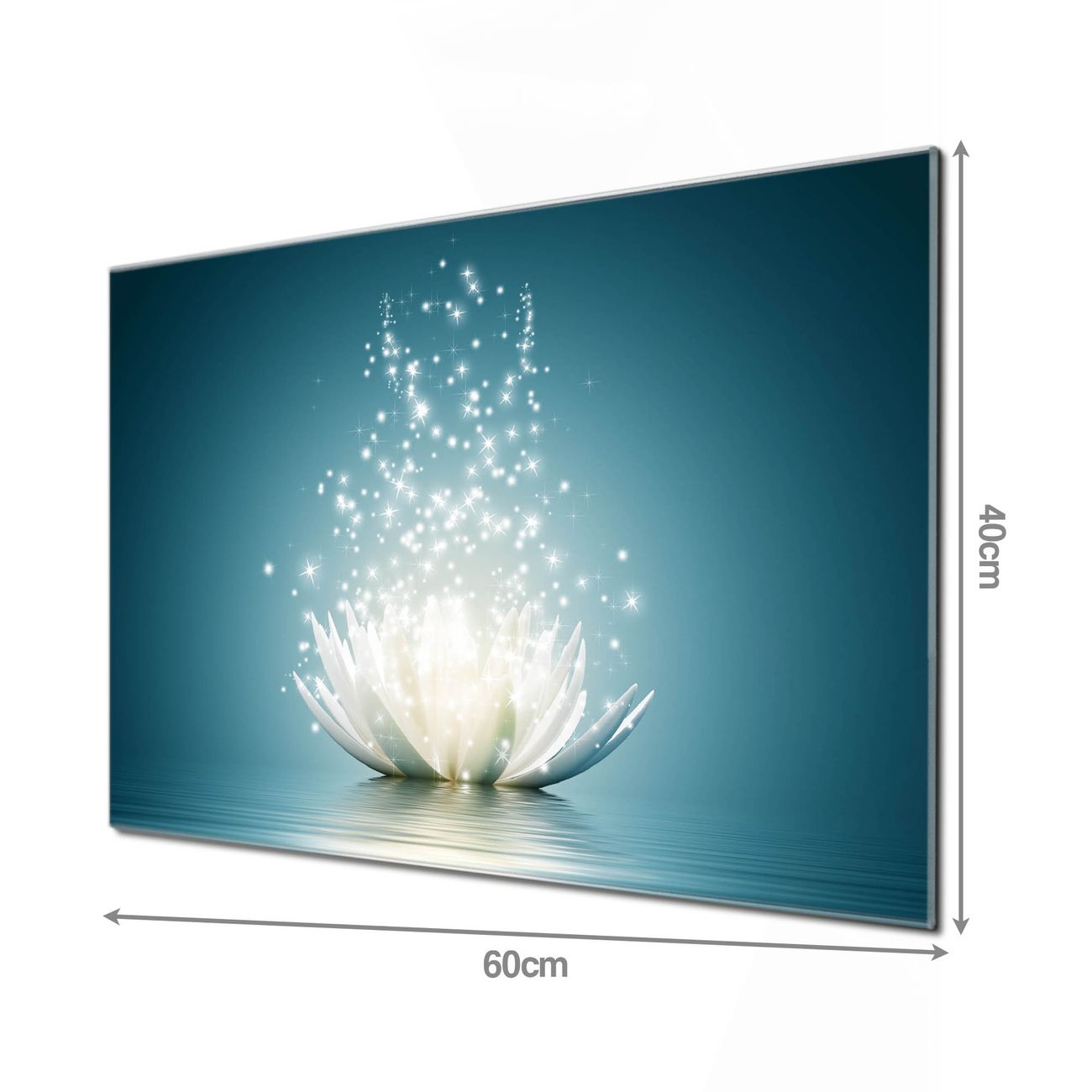 Unsere einzigartigen Glasbilder im Querformat von banjado mit Motiv Magische Lotusblüte sind der absolute Hingucker! Unsere Banjado Glasbilder sind sehr begehrt, weil sie top verarbeitet sind und sich ganz leicht montieren lassen. Schon mit wenigen Handgriffen hängen sie an der Wand und strahlen mit höchster brillianz. Durch die Ramenlose Herstellung schwebt das Echtglasbild förmlich an der Wand. Das Motiv erscheint besonders ausdrucksstark und hochwertig und ist hinter dem Echtglas geschützt.