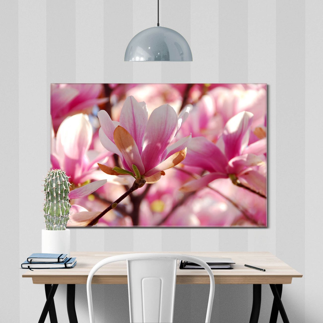 Unsere einzigartigen Glasbilder im Querformat von banjado mit Motiv Magnolia sind der absolute Hingucker! Unsere Banjado Glasbilder sind sehr begehrt, weil sie top verarbeitet sind und sich ganz leicht montieren lassen. Schon mit wenigen Handgriffen hängen sie an der Wand und strahlen mit höchster brillianz. Durch die Ramenlose Herstellung schwebt das Echtglasbild förmlich an der Wand. Das Motiv erscheint besonders ausdrucksstark und hochwertig und ist hinter dem Echtglas geschützt.