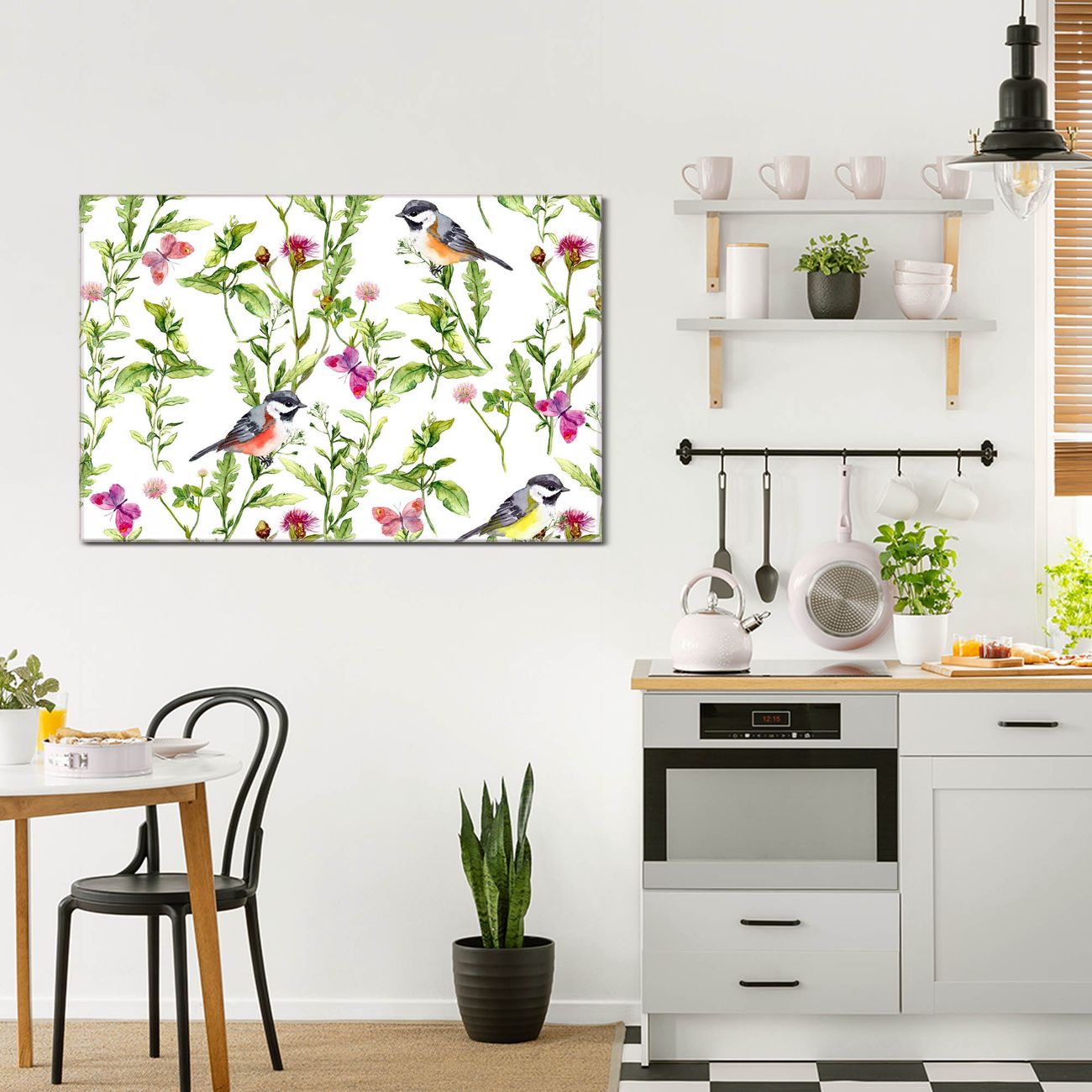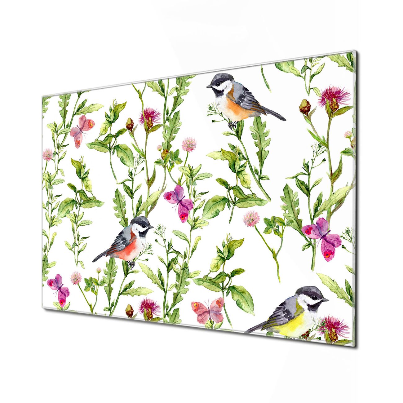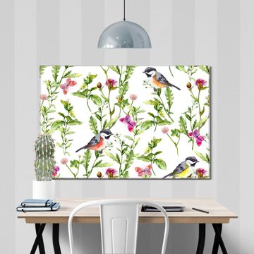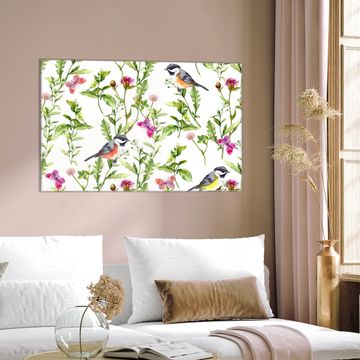 Einzigartiges Wandbild im Querformat Meisen im Klee