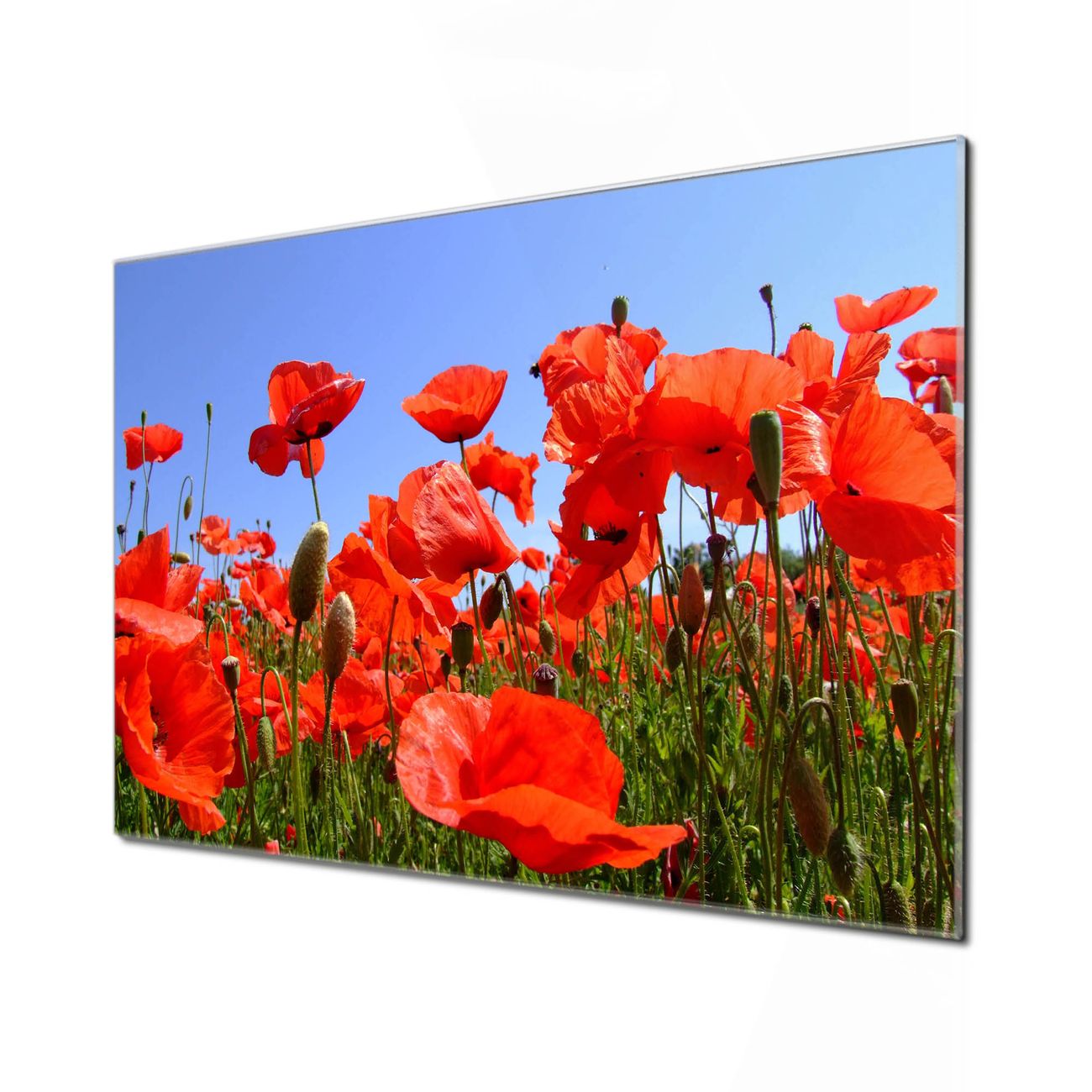 Unsere einzigartigen Glasbilder im Querformat von banjado mit Motiv Mohnblumen sind der absolute Hingucker! Unsere Banjado Glasbilder sind sehr begehrt, weil sie top verarbeitet sind und sich ganz leicht montieren lassen. Schon mit wenigen Handgriffen hängen sie an der Wand und strahlen mit höchster brillianz. Durch die Ramenlose Herstellung schwebt das Echtglasbild förmlich an der Wand. Das Motiv erscheint besonders ausdrucksstark und hochwertig und ist hinter dem Echtglas geschützt.
