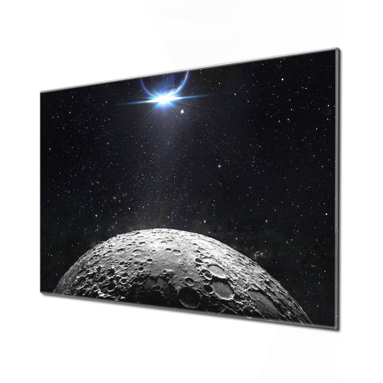 Unsere einzigartigen Glasbilder im Querformat von banjado mit Motiv Mondlandschaft sind der absolute Hingucker! Unsere Banjado Glasbilder sind sehr begehrt, weil sie top verarbeitet sind und sich ganz leicht montieren lassen. Schon mit wenigen Handgriffen hängen sie an der Wand und strahlen mit höchster brillianz. Durch die Ramenlose Herstellung schwebt das Echtglasbild förmlich an der Wand. Das Motiv erscheint besonders ausdrucksstark und hochwertig und ist hinter dem Echtglas geschützt.