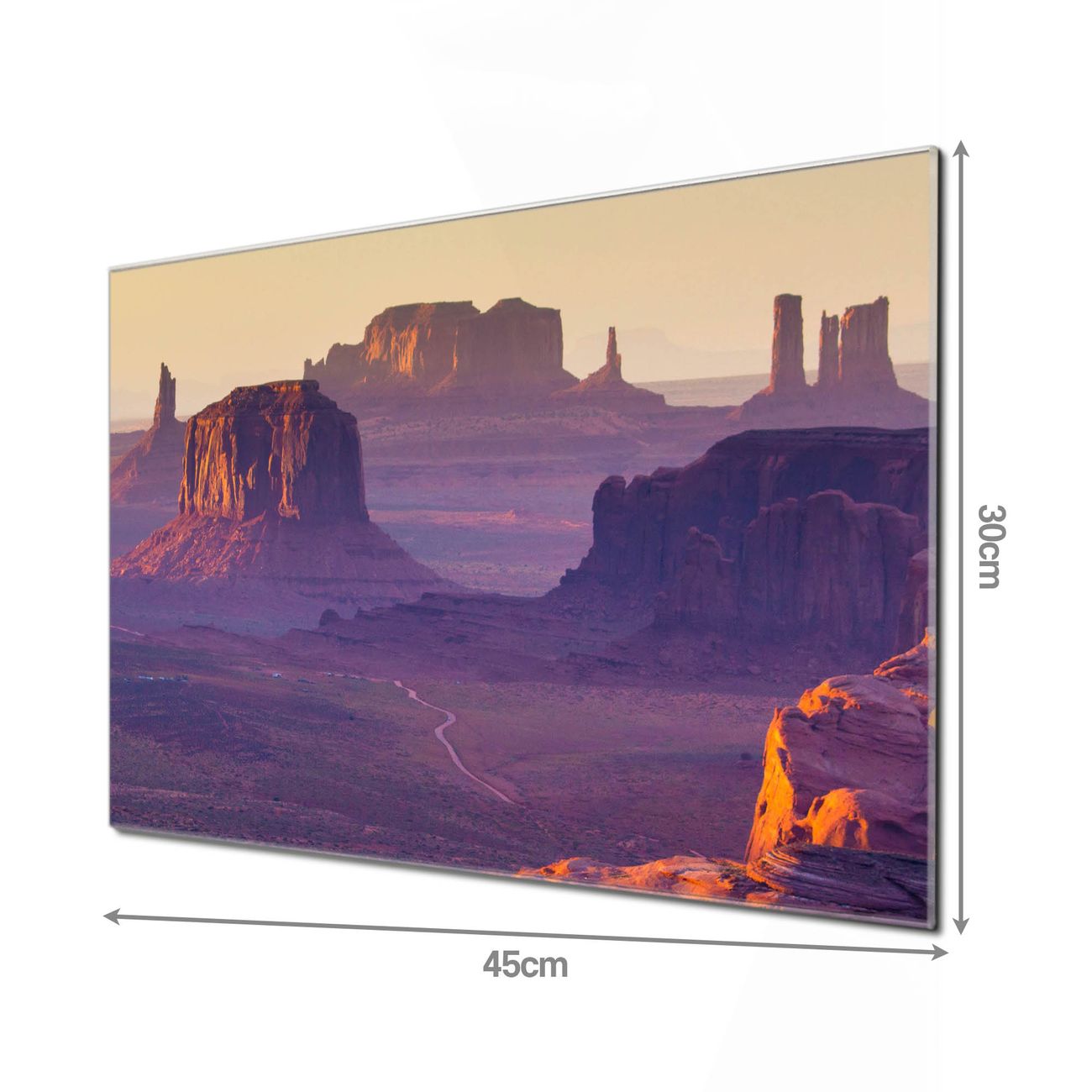 Unsere einzigartigen Glasbilder im Querformat von banjado mit Motiv Monument Valley sind der absolute Hingucker! Unsere Banjado Glasbilder sind sehr begehrt, weil sie top verarbeitet sind und sich ganz leicht montieren lassen. Schon mit wenigen Handgriffen hängen sie an der Wand und strahlen mit höchster brillianz. Durch die Ramenlose Herstellung schwebt das Echtglasbild förmlich an der Wand. Das Motiv erscheint besonders ausdrucksstark und hochwertig und ist hinter dem Echtglas geschützt.