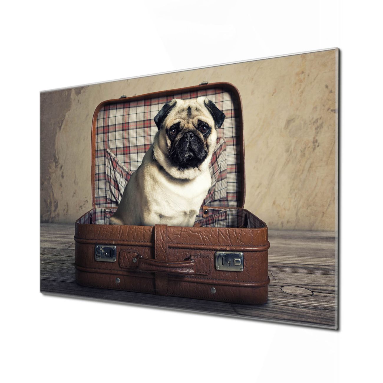 Unsere einzigartigen Glasbilder im Querformat von banjado mit Motiv Mops im Koffer sind der absolute Hingucker! Unsere Banjado Glasbilder sind sehr begehrt, weil sie top verarbeitet sind und sich ganz leicht montieren lassen. Schon mit wenigen Handgriffen hängen sie an der Wand und strahlen mit höchster brillianz. Durch die Ramenlose Herstellung schwebt das Echtglasbild förmlich an der Wand. Das Motiv erscheint besonders ausdrucksstark und hochwertig und ist hinter dem Echtglas geschützt.