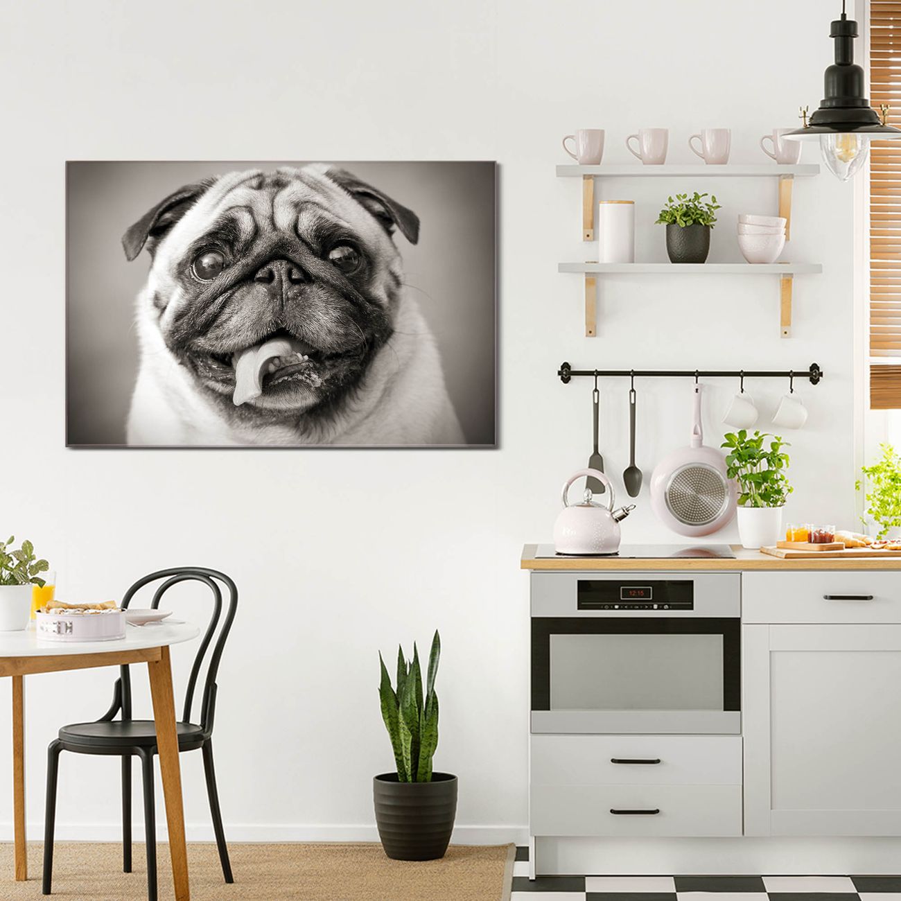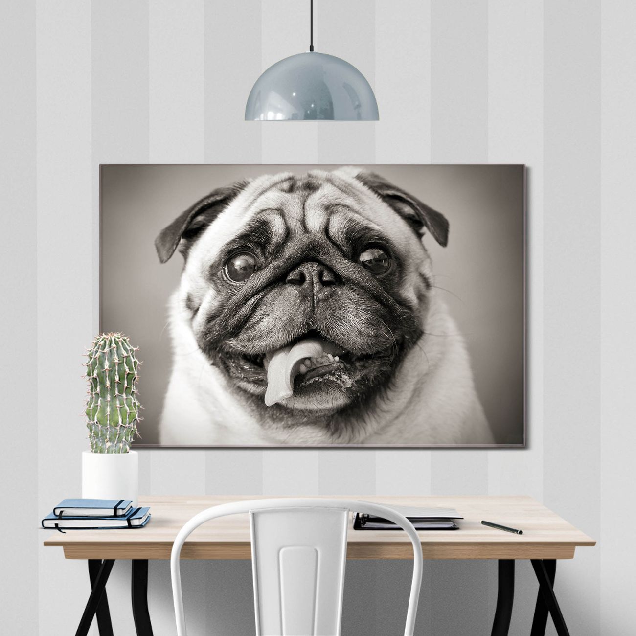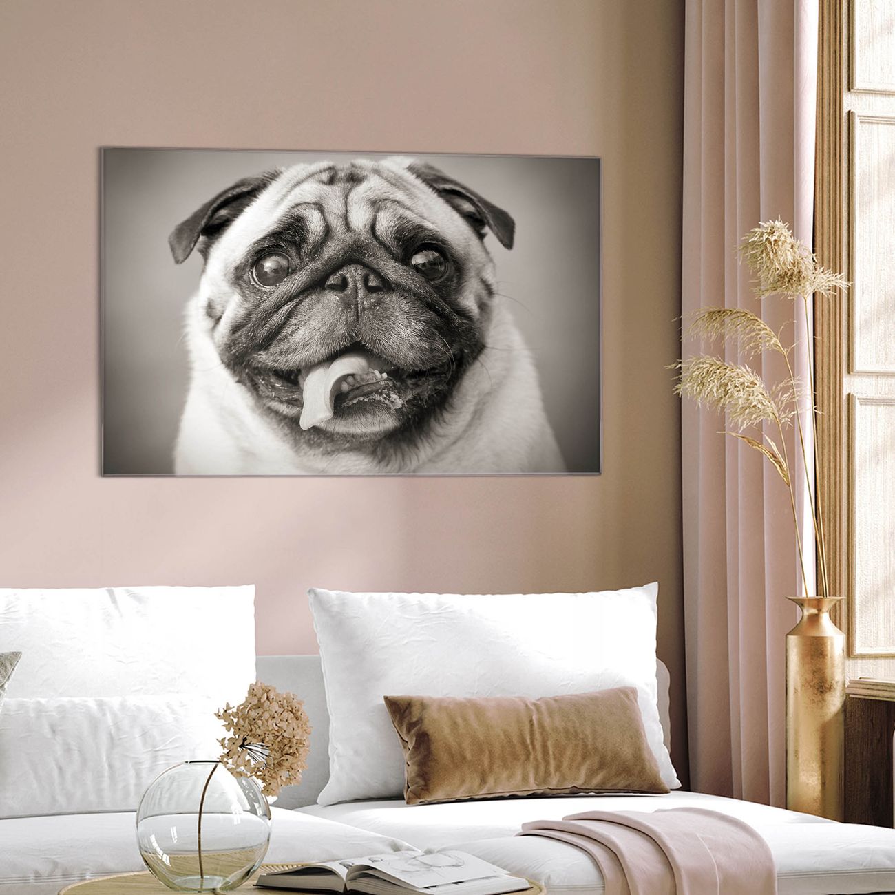 Einzigartiges Wandbild im Querformat Mops Porträt