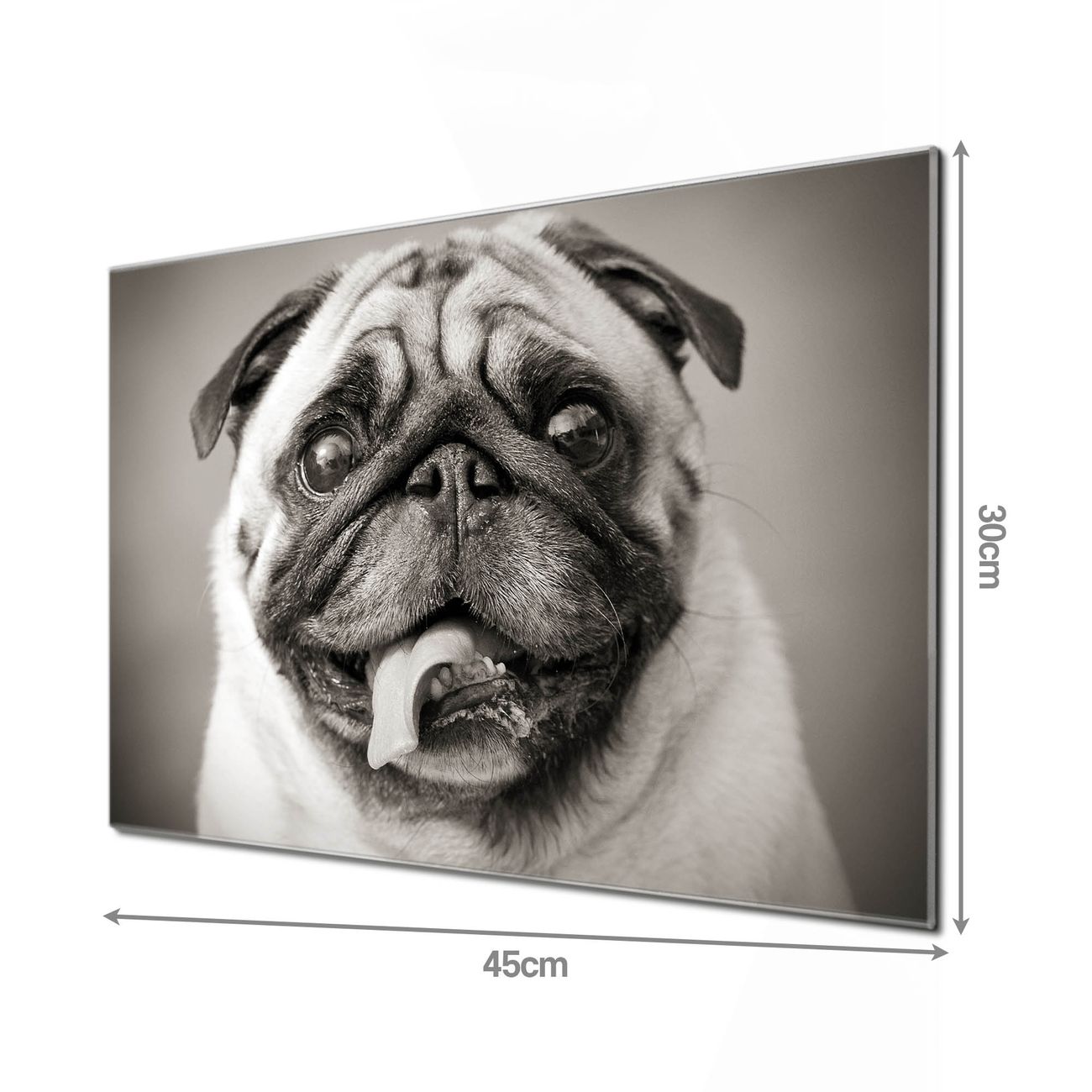 Unsere einzigartigen Glasbilder im Querformat von banjado mit Motiv Mops Porträt sind der absolute Hingucker! Unsere Banjado Glasbilder sind sehr begehrt, weil sie top verarbeitet sind und sich ganz leicht montieren lassen. Schon mit wenigen Handgriffen hängen sie an der Wand und strahlen mit höchster brillianz. Durch die Ramenlose Herstellung schwebt das Echtglasbild förmlich an der Wand. Das Motiv erscheint besonders ausdrucksstark und hochwertig und ist hinter dem Echtglas geschützt.