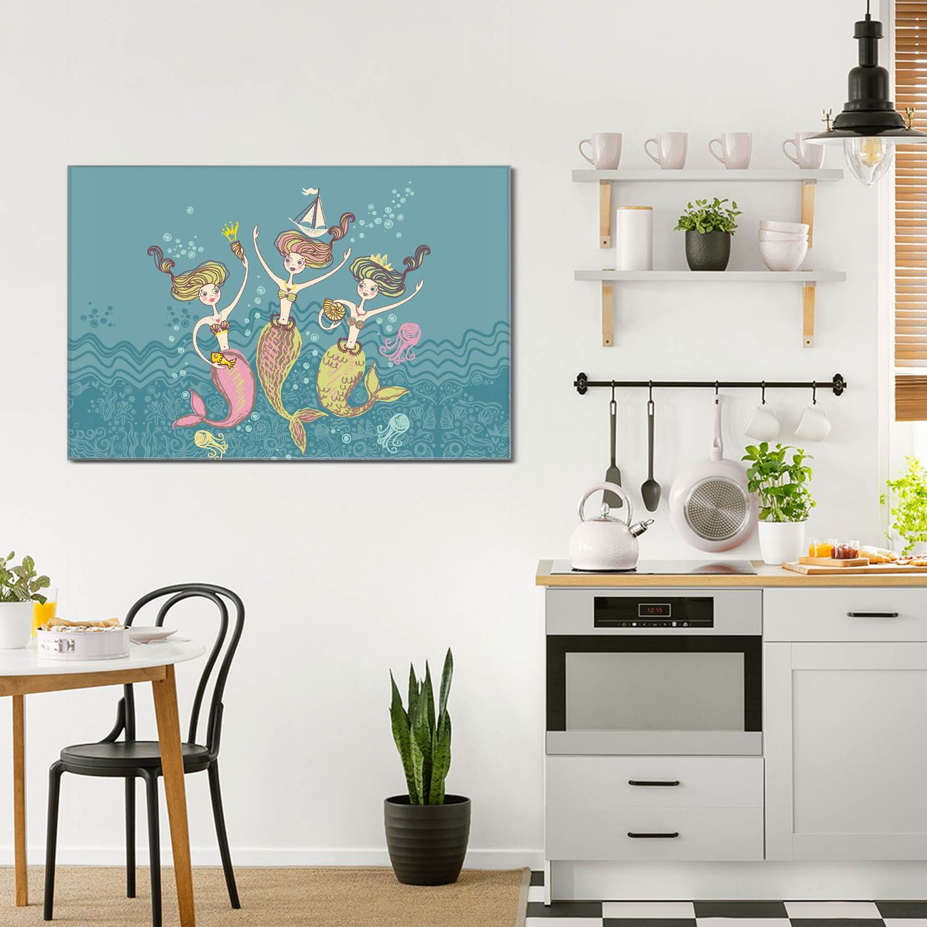 Unsere einzigartigen Glasbilder im Querformat von banjado mit Motiv Nixen sind der absolute Hingucker! Unsere Banjado Glasbilder sind sehr begehrt, weil sie top verarbeitet sind und sich ganz leicht montieren lassen. Schon mit wenigen Handgriffen hängen sie an der Wand und strahlen mit höchster brillianz. Durch die Ramenlose Herstellung schwebt das Echtglasbild förmlich an der Wand. Das Motiv erscheint besonders ausdrucksstark und hochwertig und ist hinter dem Echtglas geschützt.
