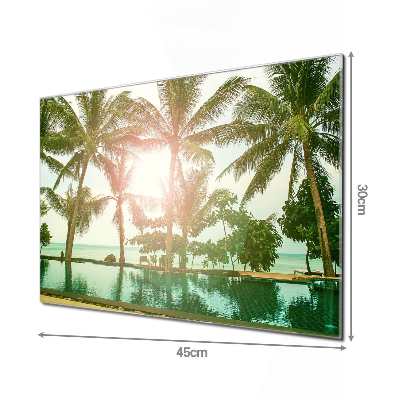 Unsere einzigartigen Glasbilder im Querformat von banjado mit Motiv Palmen sind der absolute Hingucker! Unsere Banjado Glasbilder sind sehr begehrt, weil sie top verarbeitet sind und sich ganz leicht montieren lassen. Schon mit wenigen Handgriffen hängen sie an der Wand und strahlen mit höchster brillianz. Durch die Ramenlose Herstellung schwebt das Echtglasbild förmlich an der Wand. Das Motiv erscheint besonders ausdrucksstark und hochwertig und ist hinter dem Echtglas geschützt.