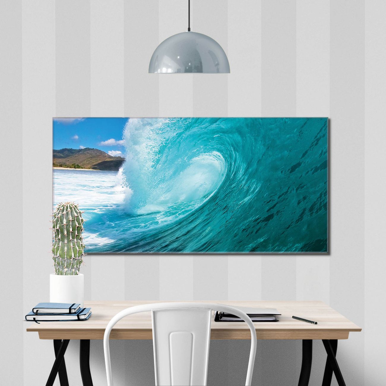 Unsere einzigartigen Glasbilder im Querformat von banjado mit Motiv Perfekte Welle sind der absolute Hingucker! Unsere Banjado Glasbilder sind sehr begehrt, weil sie top verarbeitet sind und sich ganz leicht montieren lassen. Schon mit wenigen Handgriffen hängen sie an der Wand und strahlen mit höchster brillianz. Durch die Ramenlose Herstellung schwebt das Echtglasbild förmlich an der Wand. Das Motiv erscheint besonders ausdrucksstark und hochwertig und ist hinter dem Echtglas geschützt.