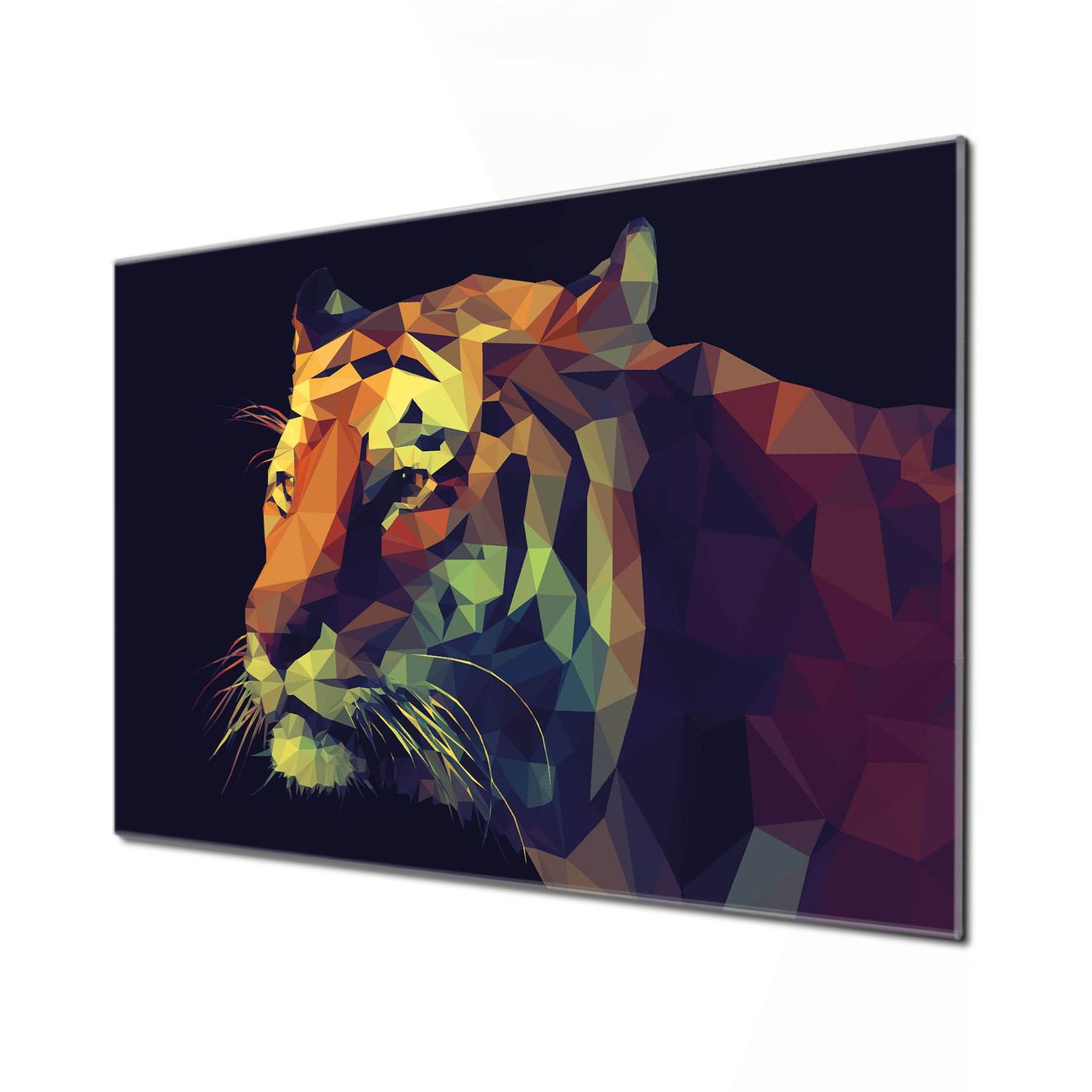 Unsere einzigartigen Glasbilder im Querformat von banjado mit Motiv Polygon Tiger sind der absolute Hingucker! Unsere Banjado Glasbilder sind sehr begehrt, weil sie top verarbeitet sind und sich ganz leicht montieren lassen. Schon mit wenigen Handgriffen hängen sie an der Wand und strahlen mit höchster brillianz. Durch die Ramenlose Herstellung schwebt das Echtglasbild förmlich an der Wand. Das Motiv erscheint besonders ausdrucksstark und hochwertig und ist hinter dem Echtglas geschützt.