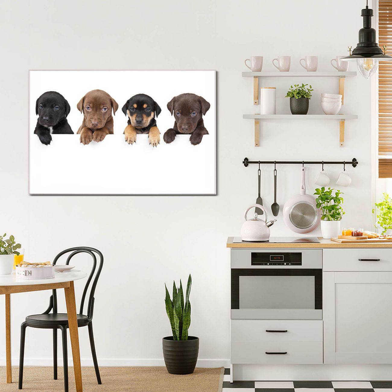 Unsere einzigartigen Glasbilder im Querformat von banjado mit Motiv Puppies sind der absolute Hingucker! Unsere Banjado Glasbilder sind sehr begehrt, weil sie top verarbeitet sind und sich ganz leicht montieren lassen. Schon mit wenigen Handgriffen hängen sie an der Wand und strahlen mit höchster brillianz. Durch die Ramenlose Herstellung schwebt das Echtglasbild förmlich an der Wand. Das Motiv erscheint besonders ausdrucksstark und hochwertig und ist hinter dem Echtglas geschützt.