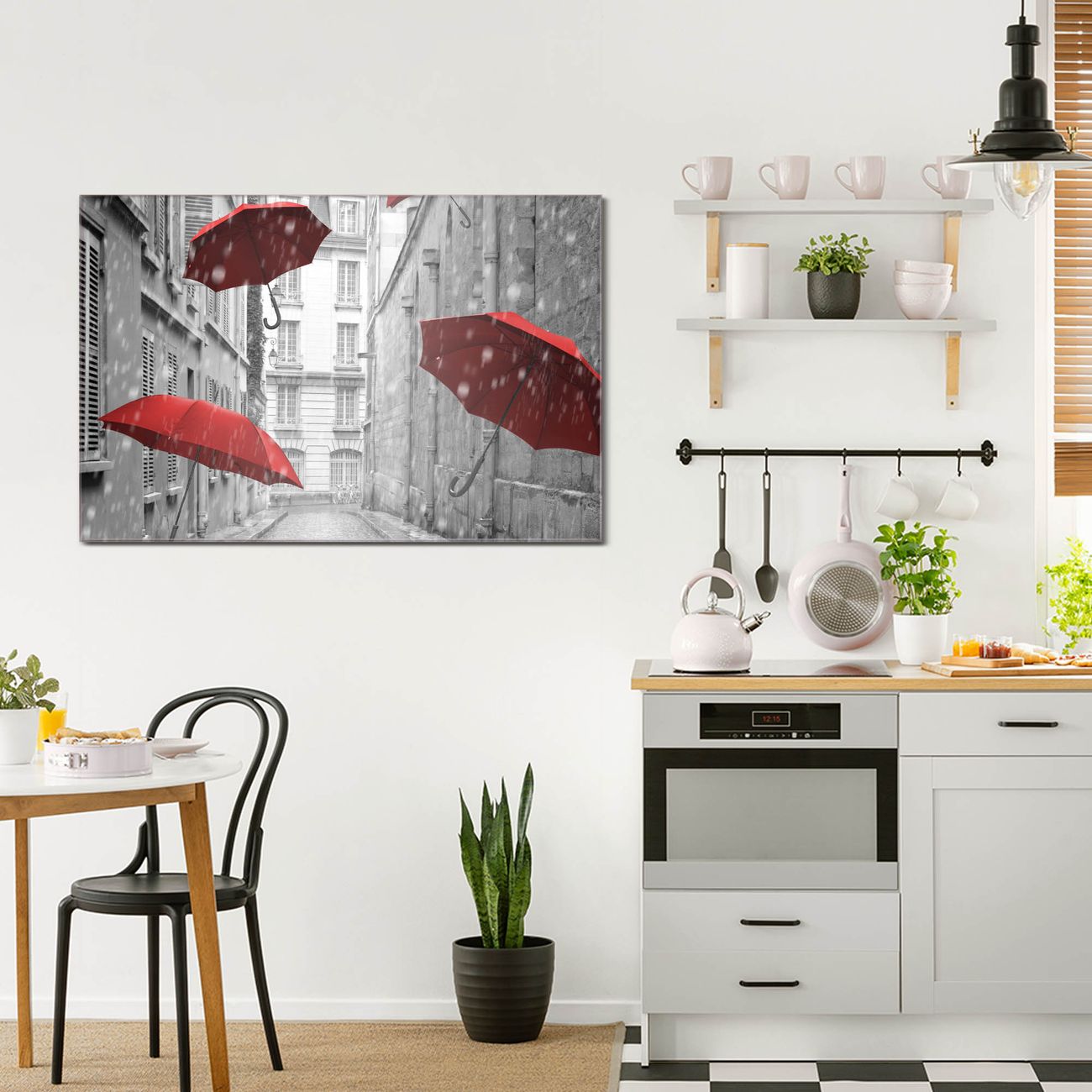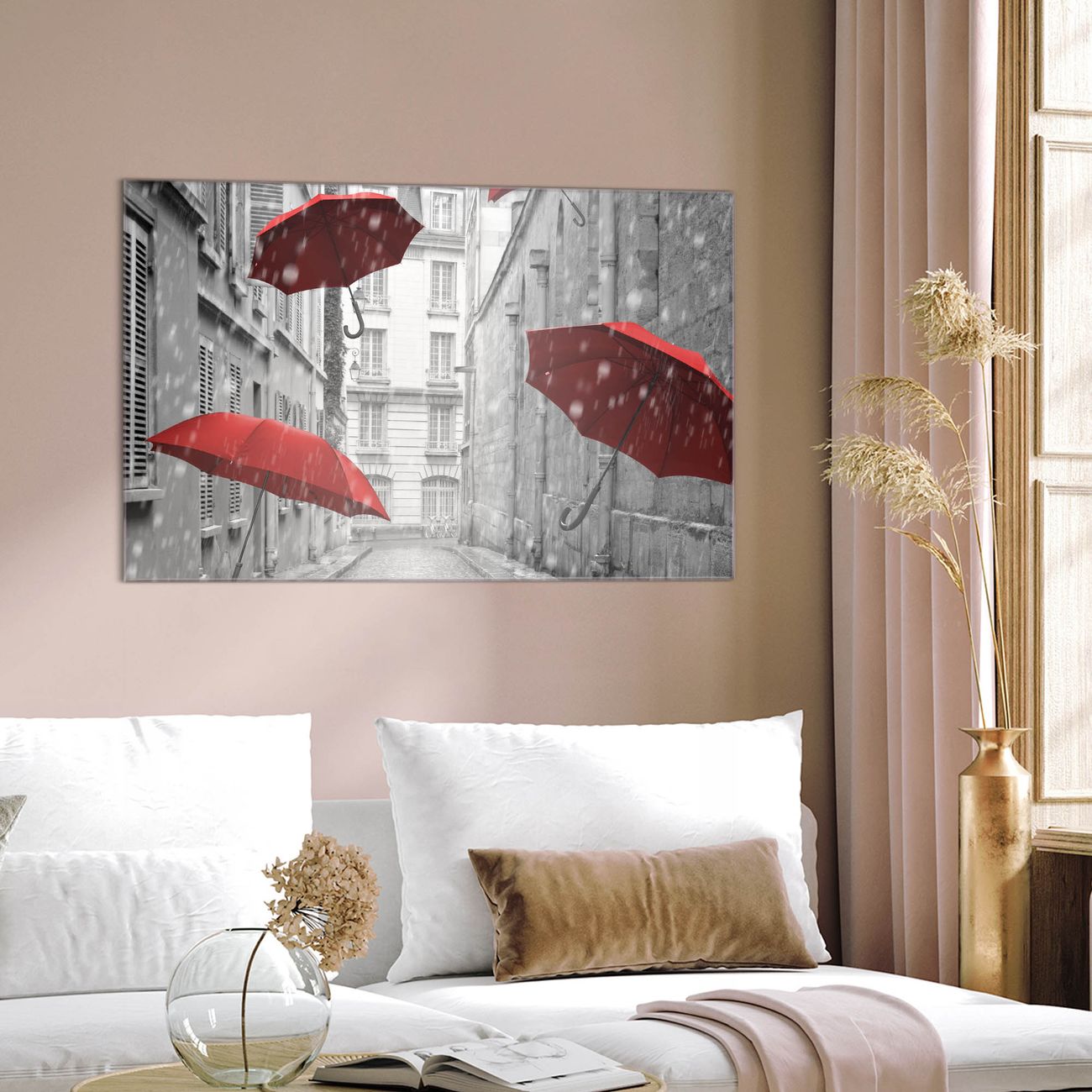 Einzigartiges Wandbild im Querformat Rote Schirme