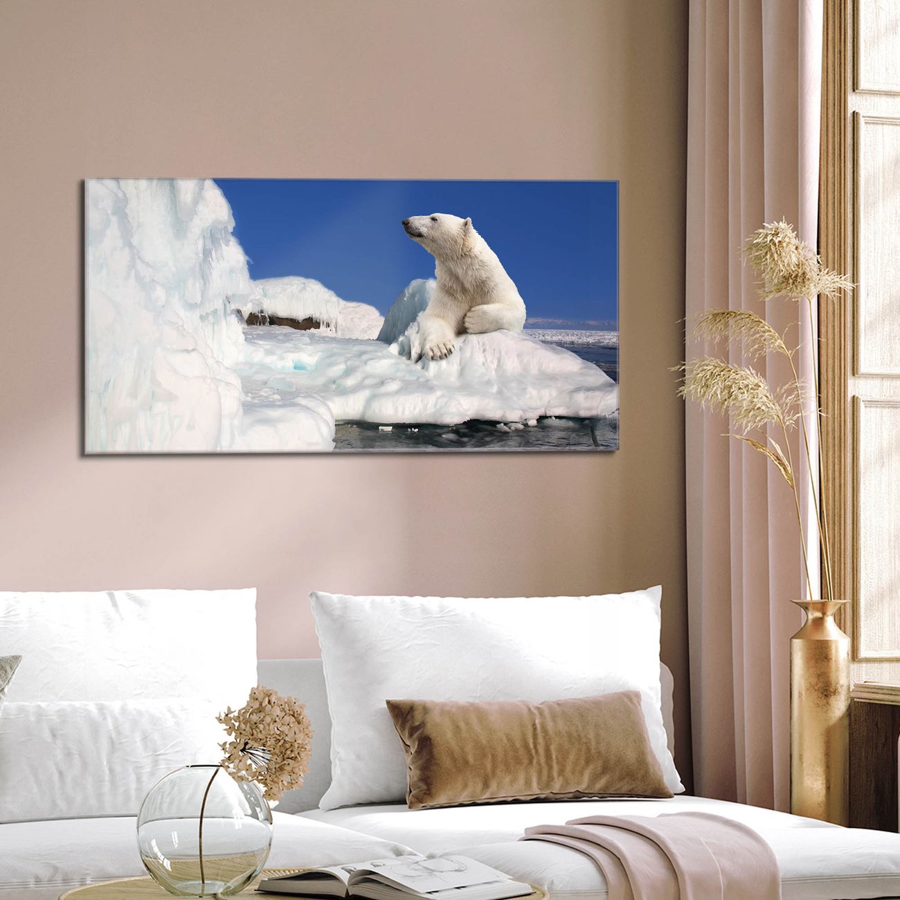 Unsere einzigartigen Glasbilder im Querformat von banjado mit Motiv Ruhender Eisbär sind der absolute Hingucker! Unsere Banjado Glasbilder sind sehr begehrt, weil sie top verarbeitet sind und sich ganz leicht montieren lassen. Schon mit wenigen Handgriffen hängen sie an der Wand und strahlen mit höchster brillianz. Durch die Ramenlose Herstellung schwebt das Echtglasbild förmlich an der Wand. Das Motiv erscheint besonders ausdrucksstark und hochwertig und ist hinter dem Echtglas geschützt.