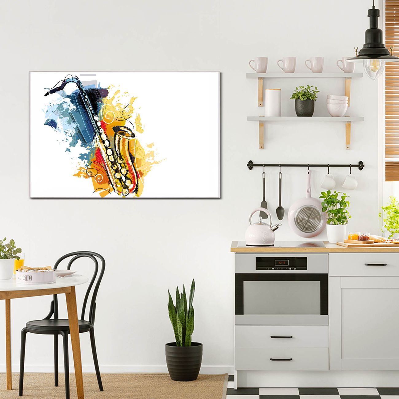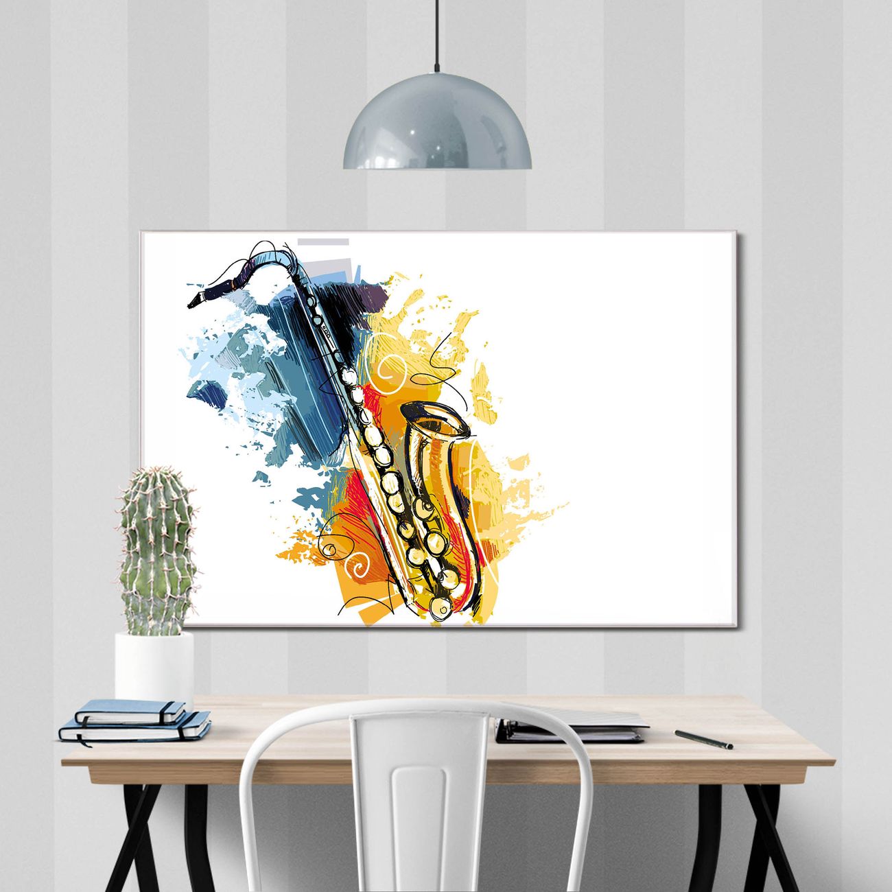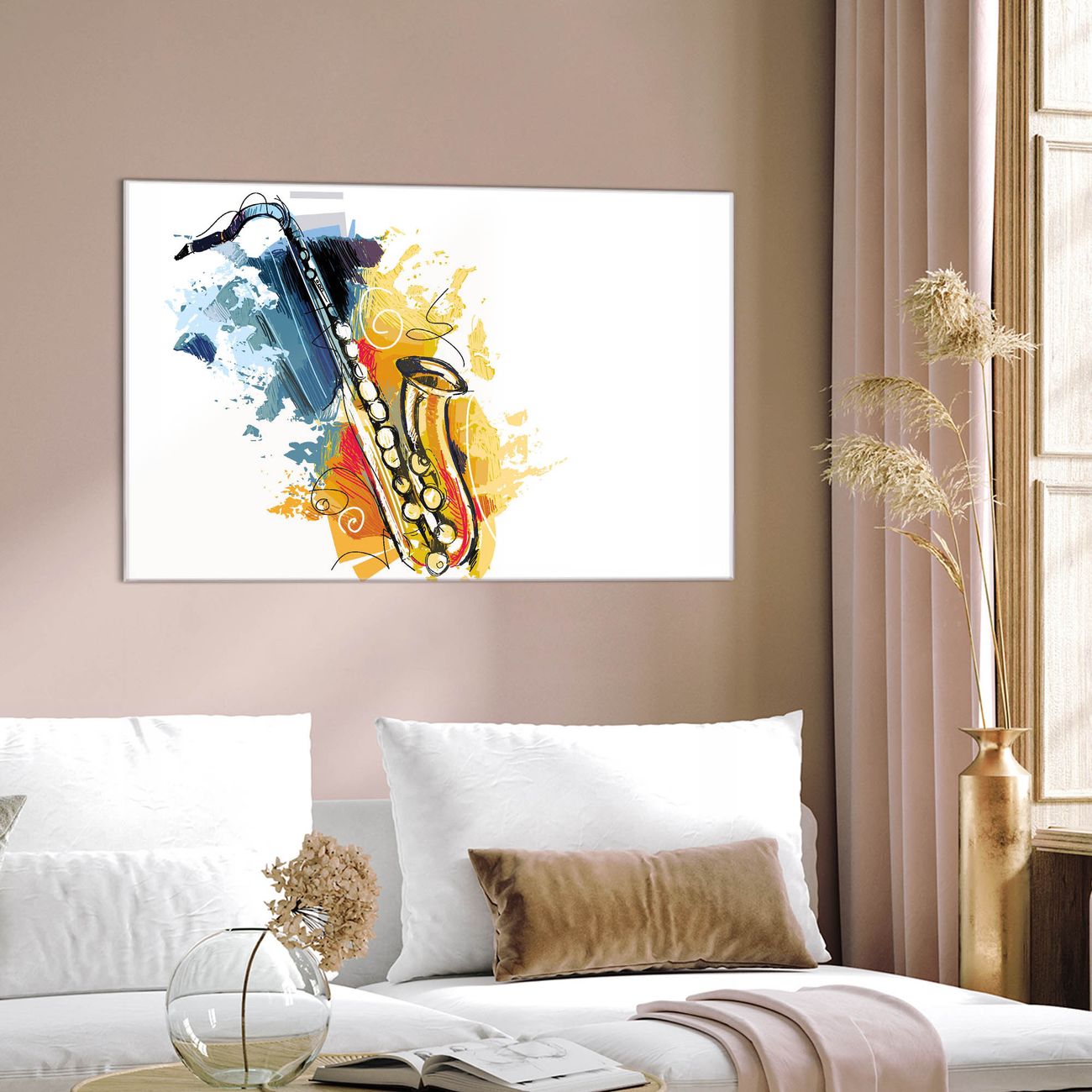 Unsere einzigartigen Glasbilder im Querformat von banjado mit Motiv Saxophon sind der absolute Hingucker! Unsere Banjado Glasbilder sind sehr begehrt, weil sie top verarbeitet sind und sich ganz leicht montieren lassen. Schon mit wenigen Handgriffen hängen sie an der Wand und strahlen mit höchster brillianz. Durch die Ramenlose Herstellung schwebt das Echtglasbild förmlich an der Wand. Das Motiv erscheint besonders ausdrucksstark und hochwertig und ist hinter dem Echtglas geschützt.