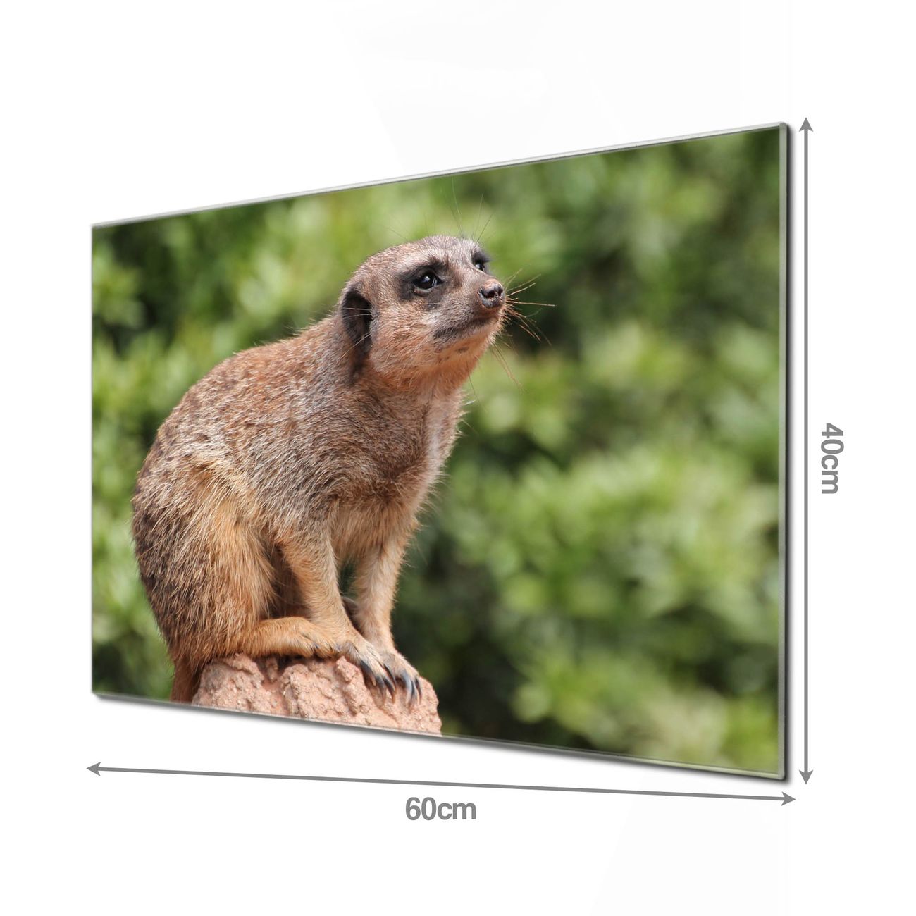 Unsere einzigartigen Glasbilder im Querformat von banjado mit Motiv Sitzendes Erdmännchen sind der absolute Hingucker! Unsere Banjado Glasbilder sind sehr begehrt, weil sie top verarbeitet sind und sich ganz leicht montieren lassen. Schon mit wenigen Handgriffen hängen sie an der Wand und strahlen mit höchster brillianz. Durch die Ramenlose Herstellung schwebt das Echtglasbild förmlich an der Wand. Das Motiv erscheint besonders ausdrucksstark und hochwertig und ist hinter dem Echtglas geschützt.