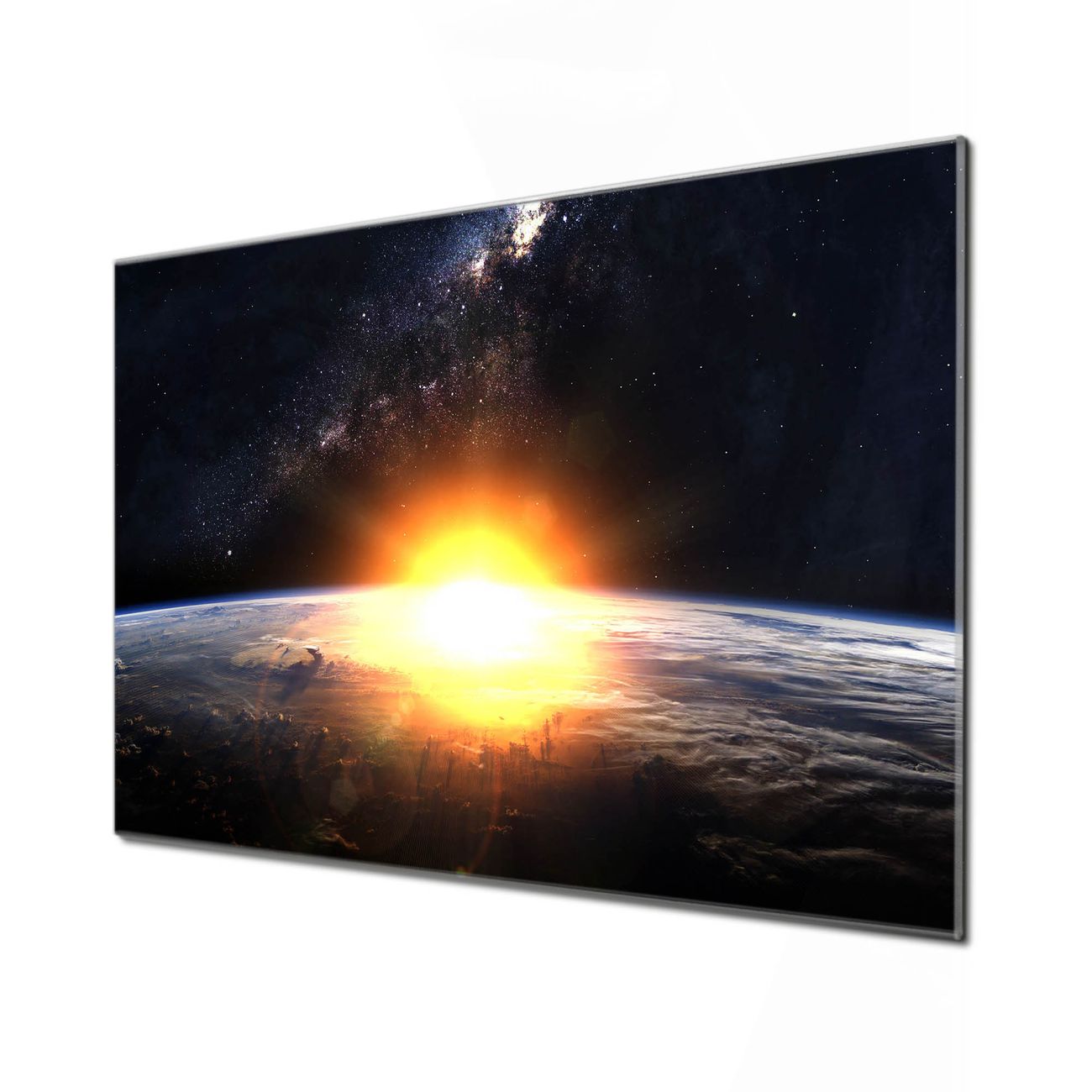 Unsere einzigartigen Glasbilder im Querformat von banjado mit Motiv Sonne im Weltall sind der absolute Hingucker! Unsere Banjado Glasbilder sind sehr begehrt, weil sie top verarbeitet sind und sich ganz leicht montieren lassen. Schon mit wenigen Handgriffen hängen sie an der Wand und strahlen mit höchster brillianz. Durch die Ramenlose Herstellung schwebt das Echtglasbild förmlich an der Wand. Das Motiv erscheint besonders ausdrucksstark und hochwertig und ist hinter dem Echtglas geschützt.