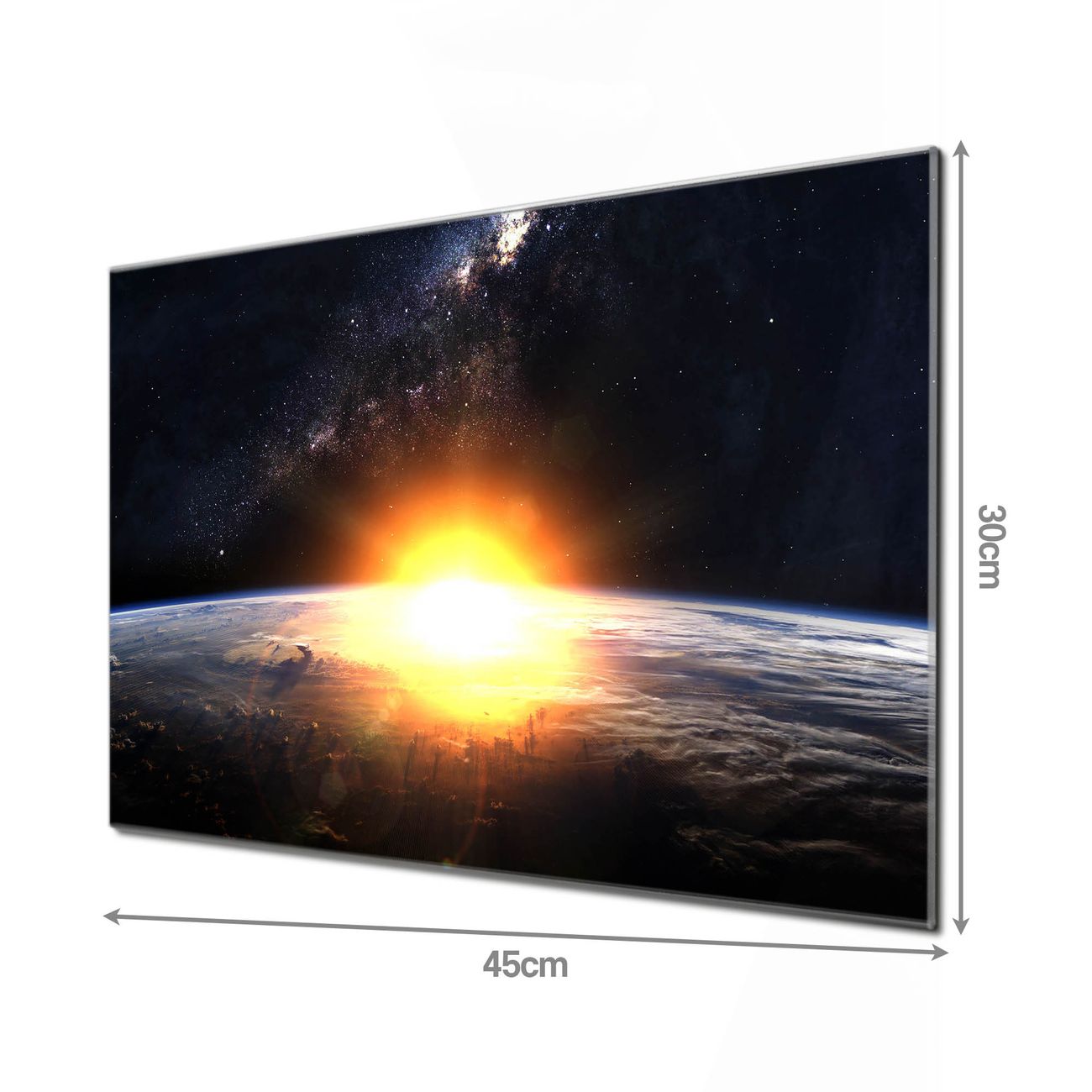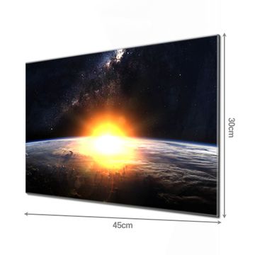 Unsere einzigartigen Glasbilder im Querformat von banjado mit Motiv Sonne im Weltall sind der absolute Hingucker! Unsere Banjado Glasbilder sind sehr begehrt, weil sie top verarbeitet sind und sich ganz leicht montieren lassen. Schon mit wenigen Handgriffen hängen sie an der Wand und strahlen mit höchster brillianz. Durch die Ramenlose Herstellung schwebt das Echtglasbild förmlich an der Wand. Das Motiv erscheint besonders ausdrucksstark und hochwertig und ist hinter dem Echtglas geschützt.
