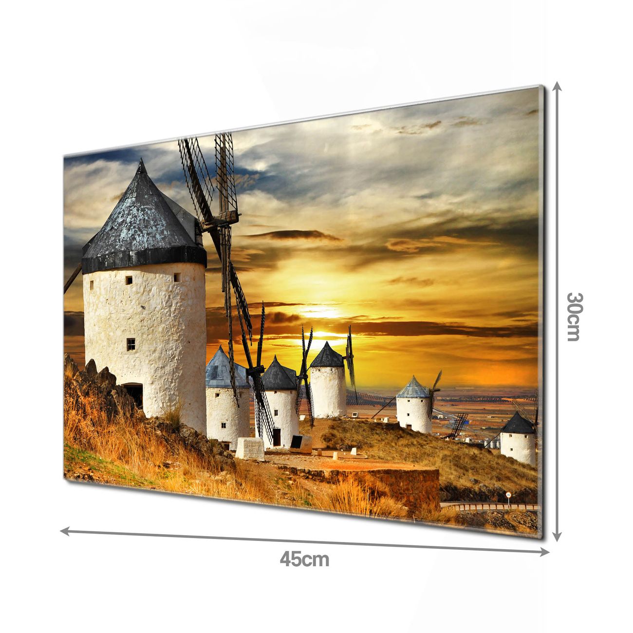 Unsere einzigartigen Glasbilder im Querformat von banjado mit Motiv Spanische Windmühlen sind der absolute Hingucker! Unsere Banjado Glasbilder sind sehr begehrt, weil sie top verarbeitet sind und sich ganz leicht montieren lassen. Schon mit wenigen Handgriffen hängen sie an der Wand und strahlen mit höchster brillianz. Durch die Ramenlose Herstellung schwebt das Echtglasbild förmlich an der Wand. Das Motiv erscheint besonders ausdrucksstark und hochwertig und ist hinter dem Echtglas geschützt.
