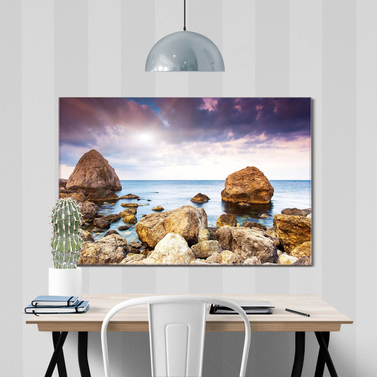 Unsere einzigartigen Glasbilder im Querformat von banjado mit Motiv Steinbucht sind der absolute Hingucker! Unsere Banjado Glasbilder sind sehr begehrt, weil sie top verarbeitet sind und sich ganz leicht montieren lassen. Schon mit wenigen Handgriffen hängen sie an der Wand und strahlen mit höchster brillianz. Durch die Ramenlose Herstellung schwebt das Echtglasbild förmlich an der Wand. Das Motiv erscheint besonders ausdrucksstark und hochwertig und ist hinter dem Echtglas geschützt.