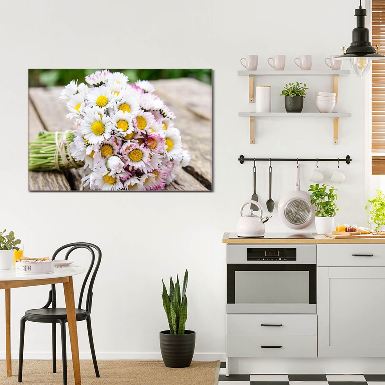 Einzigartiges Wandbild im Querformat Strauß Gänseblümchen
