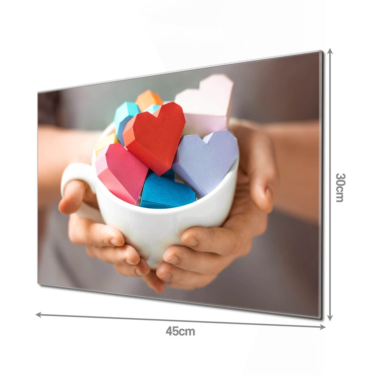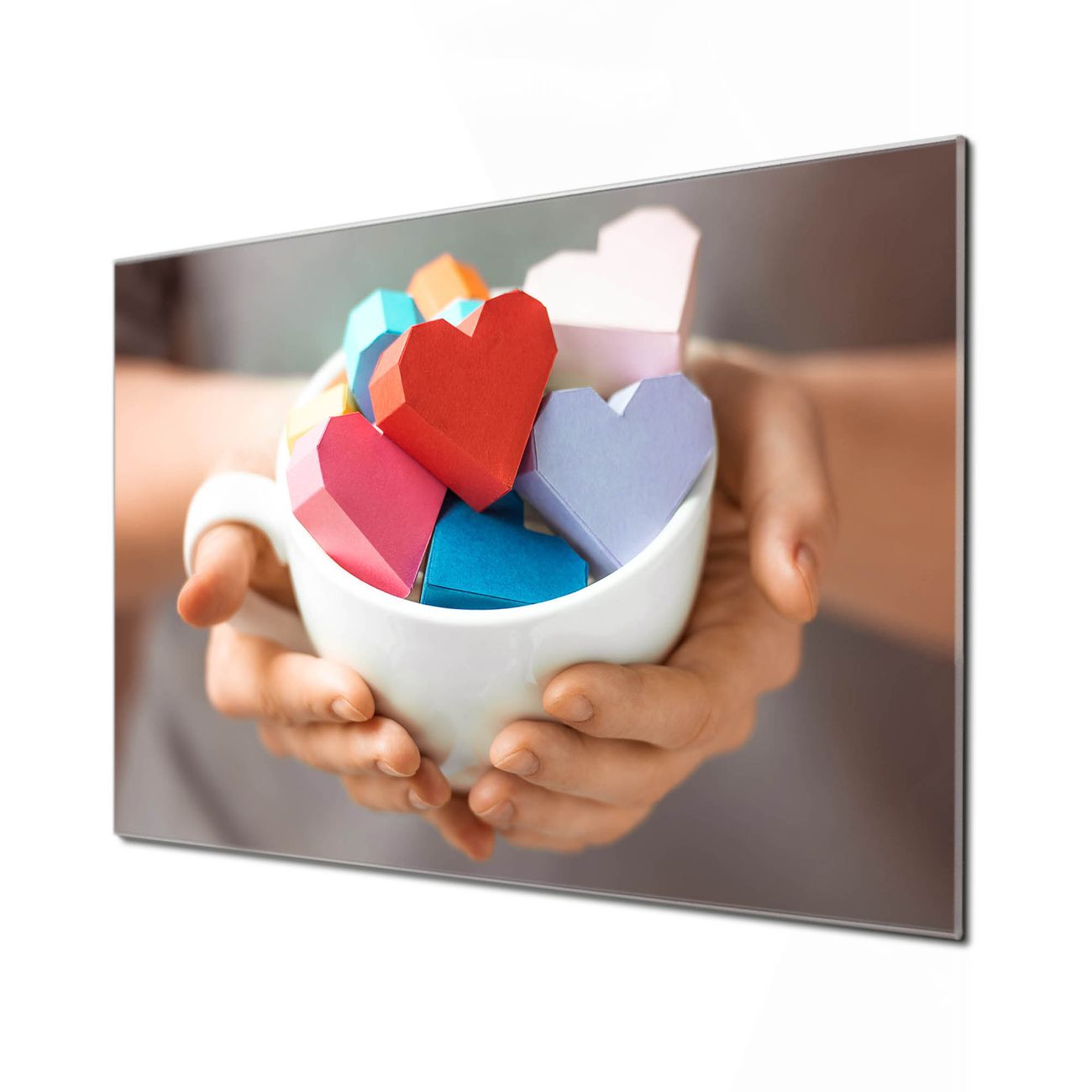 Unsere einzigartigen Glasbilder im Querformat von banjado mit Motiv Tasse voller Herzen sind der absolute Hingucker! Unsere Banjado Glasbilder sind sehr begehrt, weil sie top verarbeitet sind und sich ganz leicht montieren lassen. Schon mit wenigen Handgriffen hängen sie an der Wand und strahlen mit höchster brillianz. Durch die Ramenlose Herstellung schwebt das Echtglasbild förmlich an der Wand. Das Motiv erscheint besonders ausdrucksstark und hochwertig und ist hinter dem Echtglas geschützt.