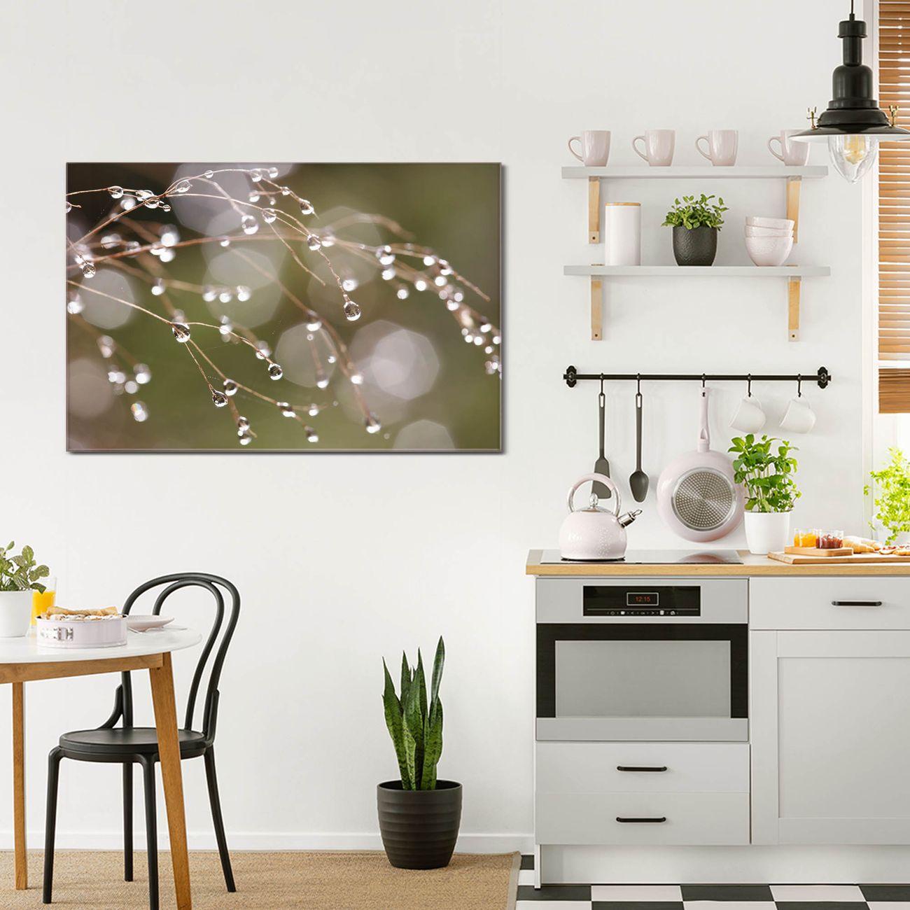 Unsere einzigartigen Glasbilder im Querformat von banjado mit Motiv Tau Auf Zweigen sind der absolute Hingucker! Unsere Banjado Glasbilder sind sehr begehrt, weil sie top verarbeitet sind und sich ganz leicht montieren lassen. Schon mit wenigen Handgriffen hängen sie an der Wand und strahlen mit höchster brillianz. Durch die Ramenlose Herstellung schwebt das Echtglasbild förmlich an der Wand. Das Motiv erscheint besonders ausdrucksstark und hochwertig und ist hinter dem Echtglas geschützt.