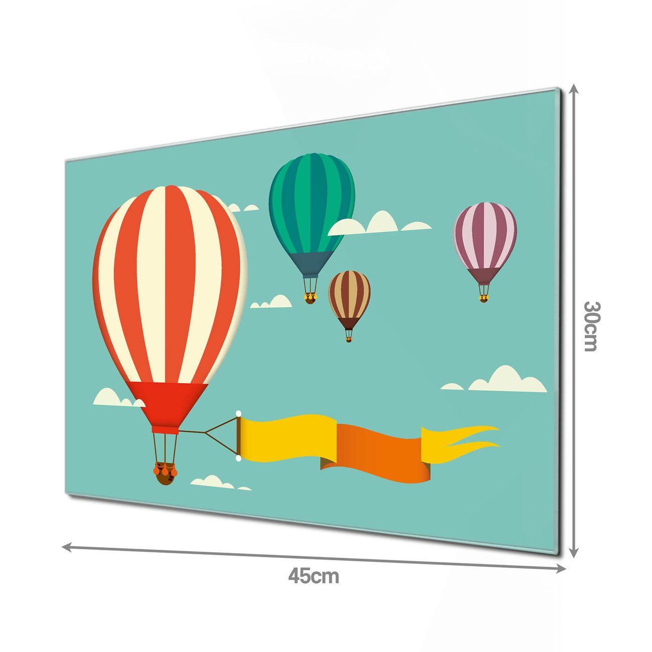 Unsere einzigartigen Glasbilder im Querformat von banjado mit Motiv Vier Ballons sind der absolute Hingucker! Unsere Banjado Glasbilder sind sehr begehrt, weil sie top verarbeitet sind und sich ganz leicht montieren lassen. Schon mit wenigen Handgriffen hängen sie an der Wand und strahlen mit höchster brillianz. Durch die Ramenlose Herstellung schwebt das Echtglasbild förmlich an der Wand. Das Motiv erscheint besonders ausdrucksstark und hochwertig und ist hinter dem Echtglas geschützt.