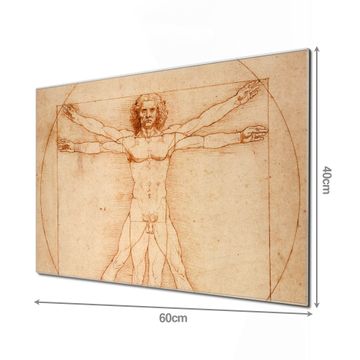 Unsere einzigartigen Glasbilder im Querformat von banjado mit Motiv Vitruvianische Figur sind der absolute Hingucker! Unsere Banjado Glasbilder sind sehr begehrt, weil sie top verarbeitet sind und sich ganz leicht montieren lassen. Schon mit wenigen Handgriffen hängen sie an der Wand und strahlen mit höchster brillianz. Durch die Ramenlose Herstellung schwebt das Echtglasbild förmlich an der Wand. Das Motiv erscheint besonders ausdrucksstark und hochwertig und ist hinter dem Echtglas geschützt.