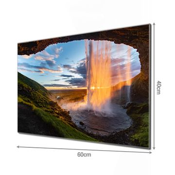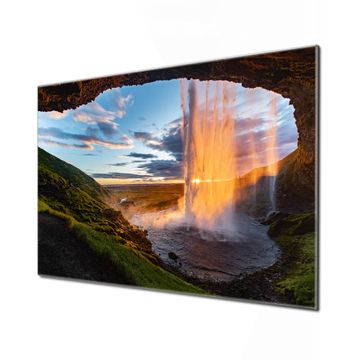 Unsere einzigartigen Glasbilder im Querformat von banjado mit Motiv Wasserfall im Sonnenlicht sind der absolute Hingucker! Unsere Banjado Glasbilder sind sehr begehrt, weil sie top verarbeitet sind und sich ganz leicht montieren lassen. Schon mit wenigen Handgriffen hängen sie an der Wand und strahlen mit höchster brillianz. Durch die Ramenlose Herstellung schwebt das Echtglasbild förmlich an der Wand. Das Motiv erscheint besonders ausdrucksstark und hochwertig und ist hinter dem Echtglas geschützt.