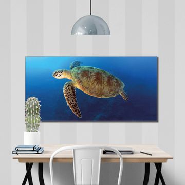 Unsere einzigartigen Glasbilder im Querformat von banjado mit Motiv Wasserschildkröte sind der absolute Hingucker! Unsere Banjado Glasbilder sind sehr begehrt, weil sie top verarbeitet sind und sich ganz leicht montieren lassen. Schon mit wenigen Handgriffen hängen sie an der Wand und strahlen mit höchster brillianz. Durch die Ramenlose Herstellung schwebt das Echtglasbild förmlich an der Wand. Das Motiv erscheint besonders ausdrucksstark und hochwertig und ist hinter dem Echtglas geschützt.