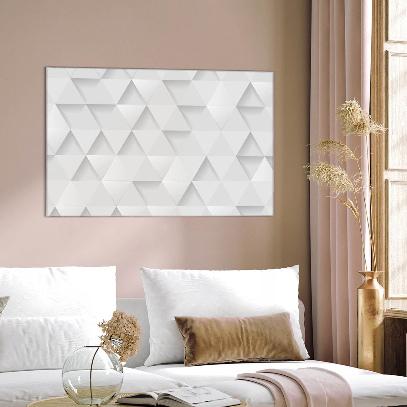 Einzigartiges Wandbild im Querformat Weisse Dreiecke