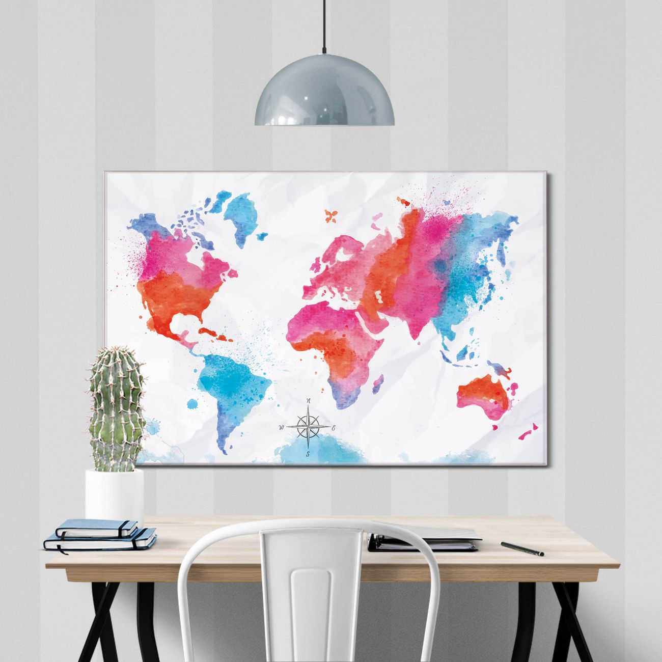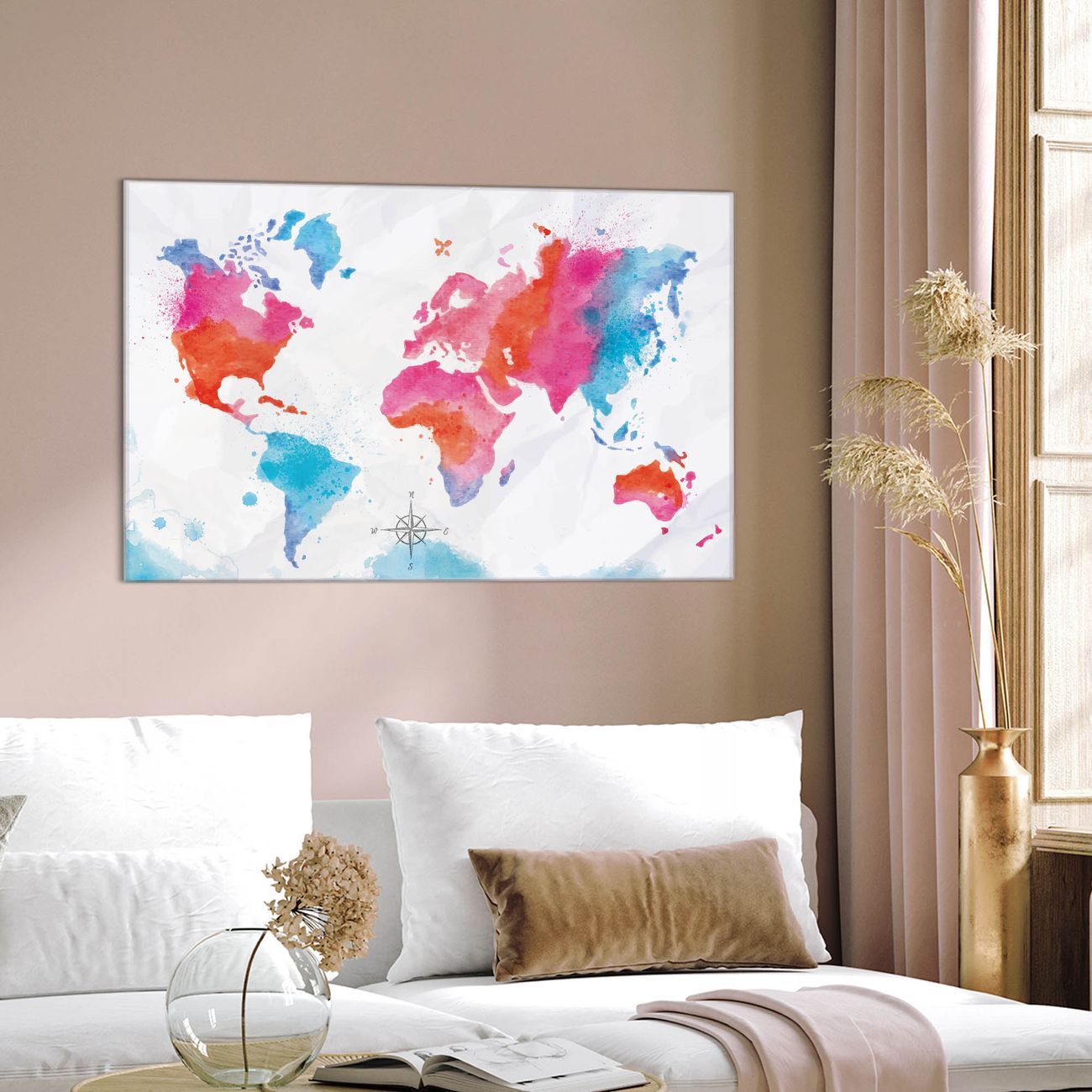 Einzigartiges Wandbild im Querformat Weltkarte pastell