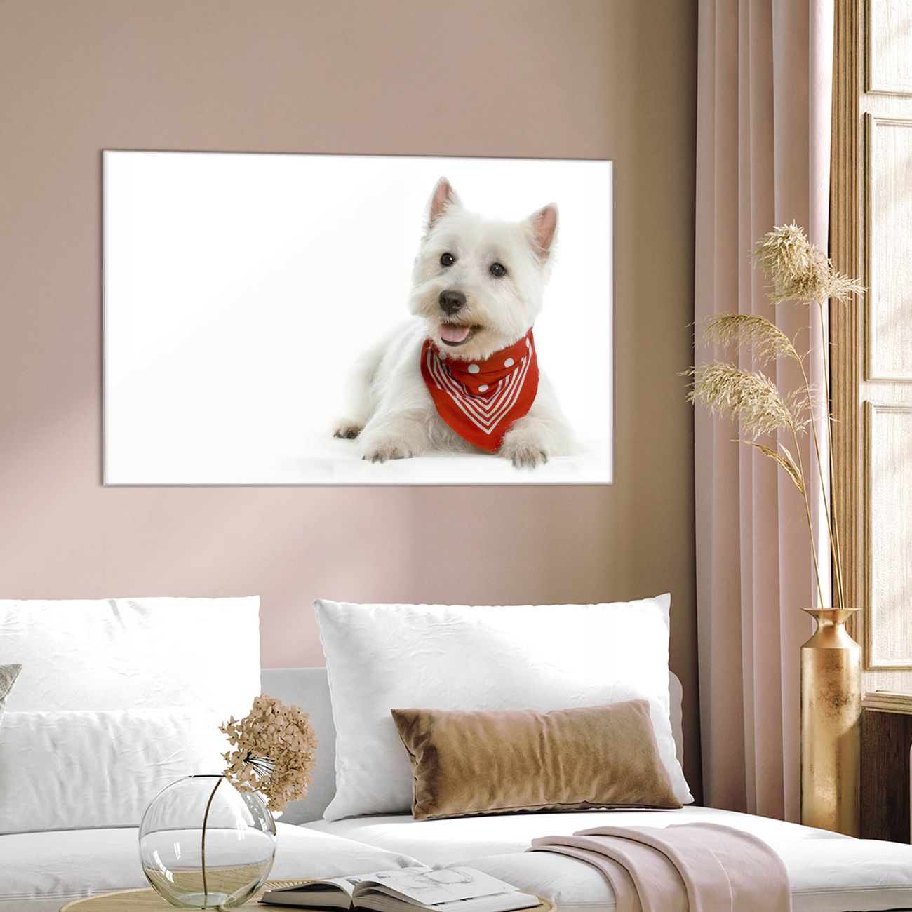 Unsere einzigartigen Glasbilder im Querformat von banjado mit Motiv Westie sind der absolute Hingucker! Unsere Banjado Glasbilder sind sehr begehrt, weil sie top verarbeitet sind und sich ganz leicht montieren lassen. Schon mit wenigen Handgriffen hängen sie an der Wand und strahlen mit höchster brillianz. Durch die Ramenlose Herstellung schwebt das Echtglasbild förmlich an der Wand. Das Motiv erscheint besonders ausdrucksstark und hochwertig und ist hinter dem Echtglas geschützt.