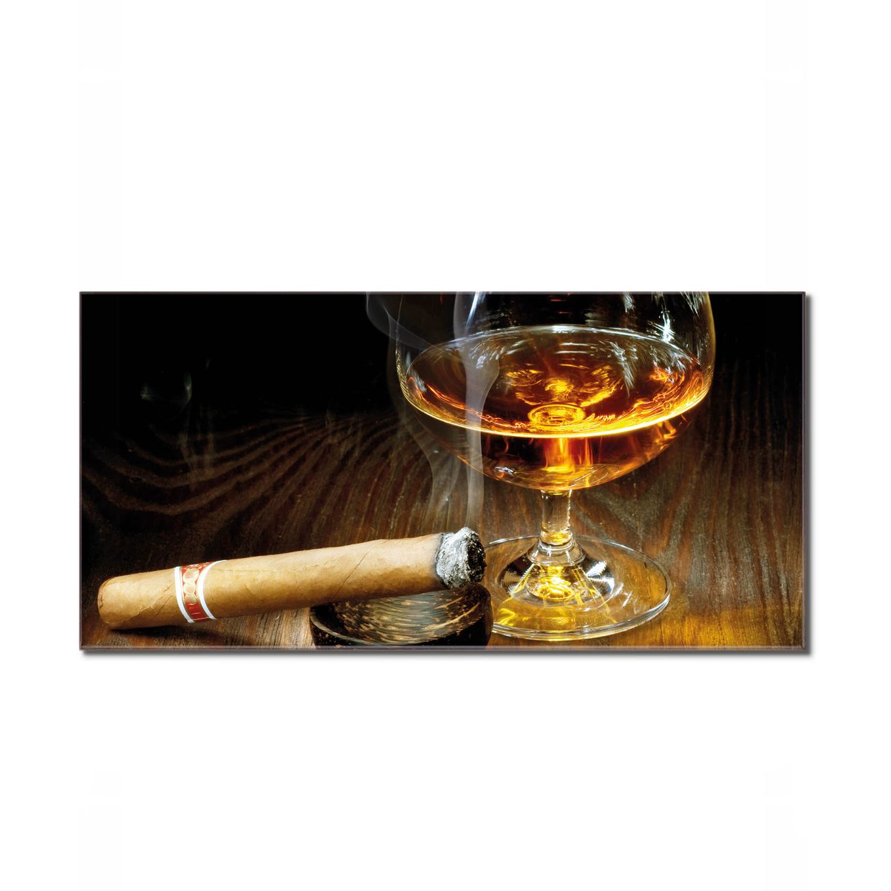 Unsere einzigartigen Glasbilder im Querformat von banjado mit Motiv Whiskey & Cigar sind der absolute Hingucker! Unsere Banjado Glasbilder sind sehr begehrt, weil sie top verarbeitet sind und sich ganz leicht montieren lassen. Schon mit wenigen Handgriffen hängen sie an der Wand und strahlen mit höchster brillianz. Durch die Ramenlose Herstellung schwebt das Echtglasbild förmlich an der Wand. Das Motiv erscheint besonders ausdrucksstark und hochwertig und ist hinter dem Echtglas geschützt.