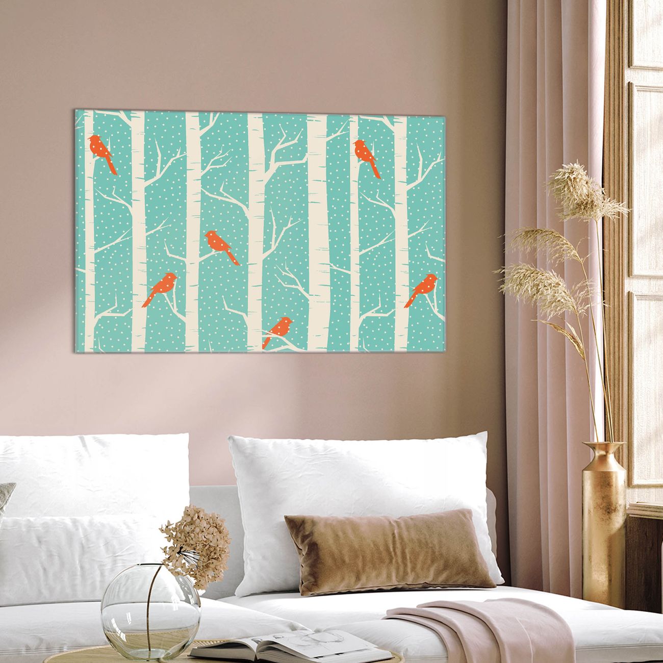Einzigartiges Wandbild im Querformat Wintervögel