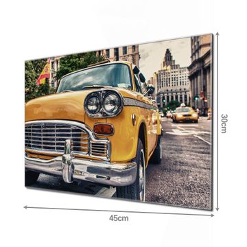 Unsere einzigartigen Glasbilder im Querformat von banjado mit Motiv Yellow Cab sind der absolute Hingucker! Unsere Banjado Glasbilder sind sehr begehrt, weil sie top verarbeitet sind und sich ganz leicht montieren lassen. Schon mit wenigen Handgriffen hängen sie an der Wand und strahlen mit höchster brillianz. Durch die Ramenlose Herstellung schwebt das Echtglasbild förmlich an der Wand. Das Motiv erscheint besonders ausdrucksstark und hochwertig und ist hinter dem Echtglas geschützt.