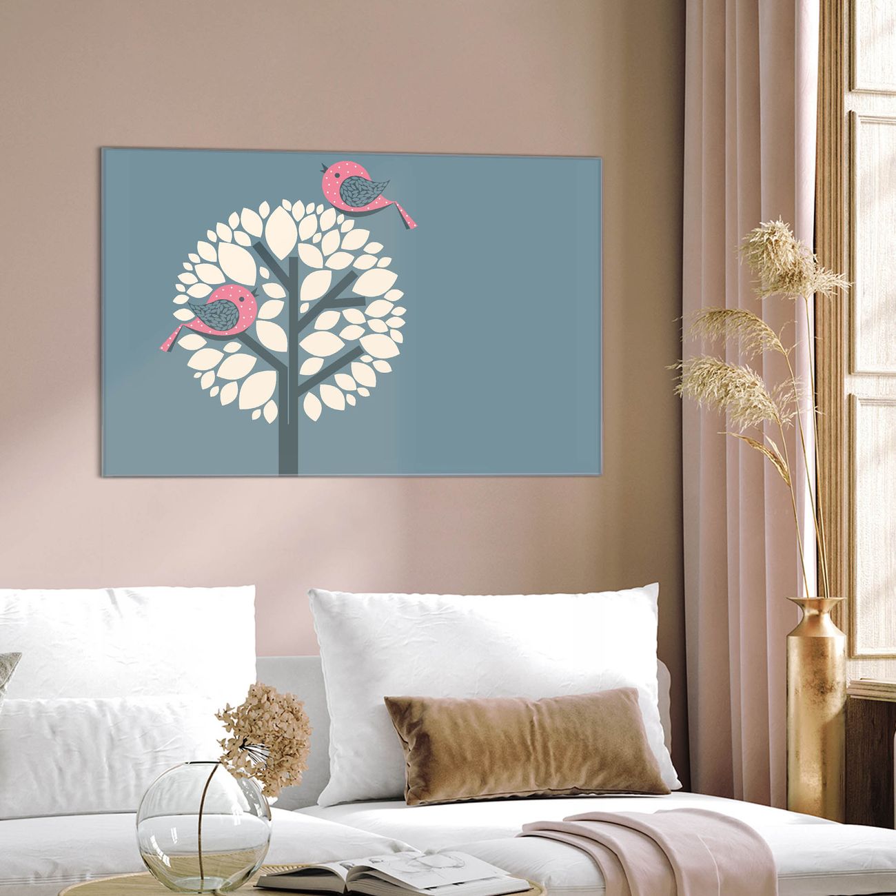 Einzigartiges Wandbild im Querformat Zwei Rosa Vögel