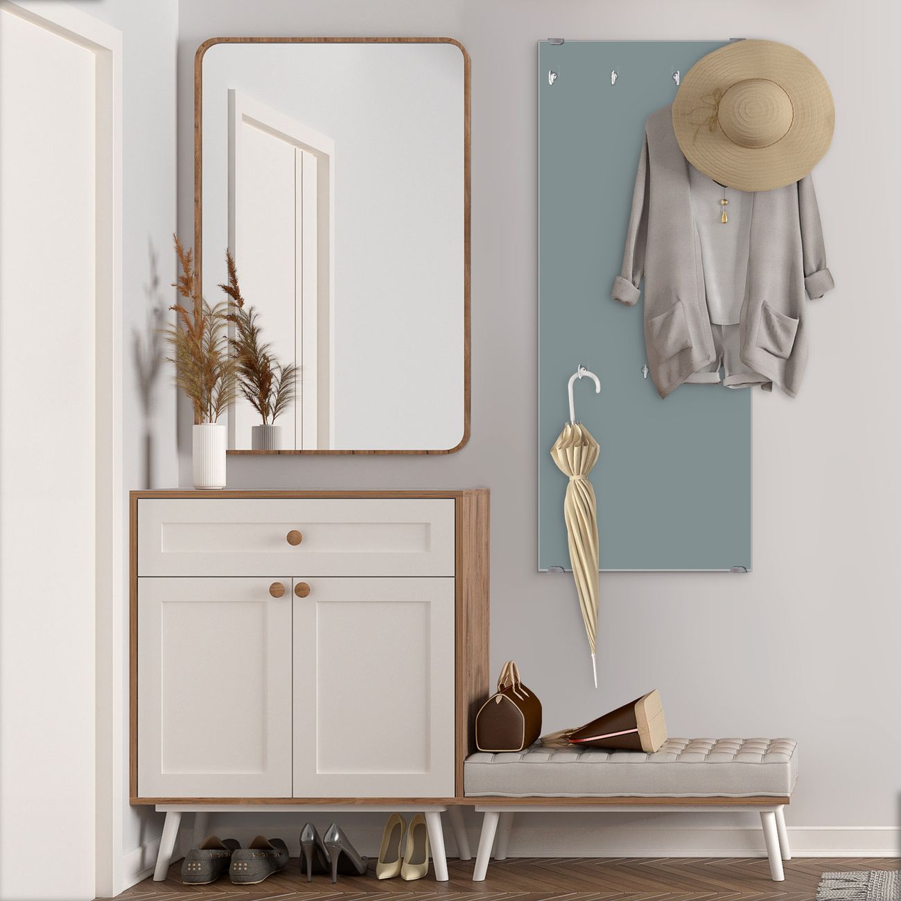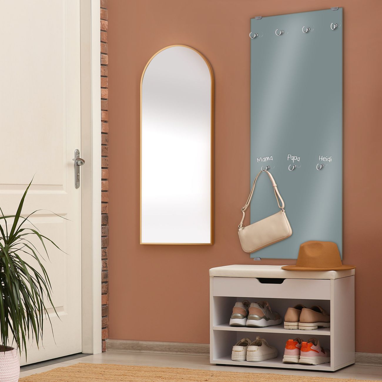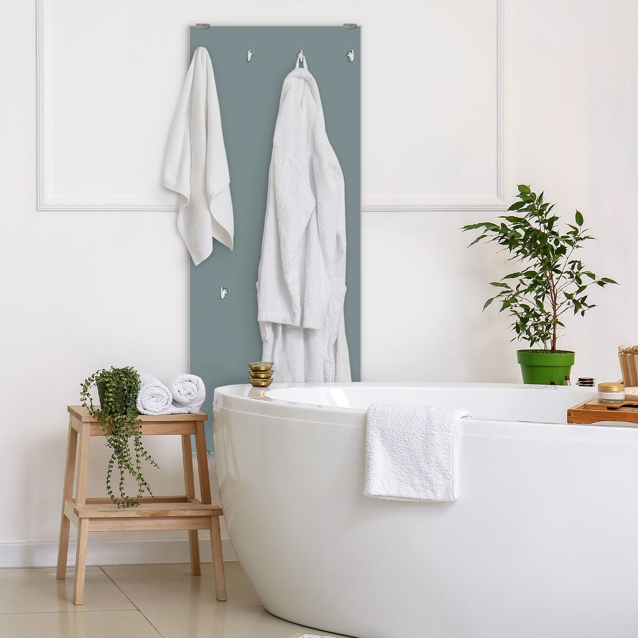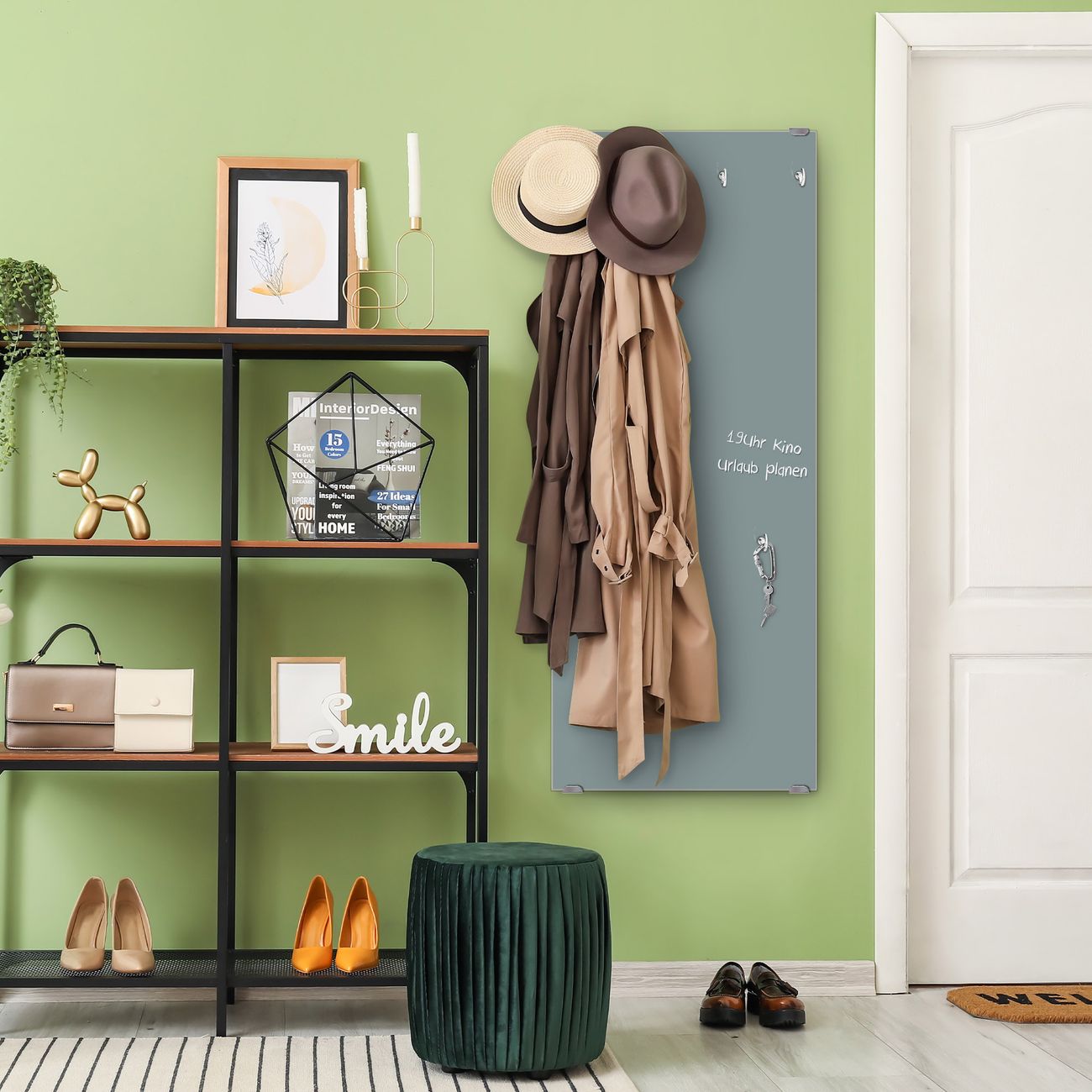 FUNKTION: Die banjado Wandgarderobe mit Farbe Grau ist Ihr täglicher Begleiter. Zuverlässig hängen hier Ihre Jacken und Mäntel griffbereit. Das Echtglas ist Ihr Paneel auch beschreibbar und wieder abwischbar. DESIGN: Sie erhalten eine Garderobenleiste aus elegantem Echtglas mit dem Farbbrillanten Farbe Grau hinterklebt. Das Design ist zeitlos klassisch, ohne dabei auf Funktionalität zu verzichten. Suchen Sie aus einer Vielzahl von Farbeen das für Ihre Einrichtung Passende aus. DETAILS: Die Flurgarderobe besteht aus 4mm gehärtetem Sicherheitsglas. Sie ist 50cm breit, 125cm hoch und 6cm tief. Die Garderobenhaken zur Selbstmontage präsentieren sich in Edelstahl-Optik, ebenso die Abstandshalter für die Wandmontage. Ihre neue Garderobe ist sofort einsatzbereit. NUTZEN: Ihre neue Garderobe hält nicht nur zuverlässig Ihre Kleidung, sie ist auch optisch ein Blickfang. Durch das Glas können Sie an der Garderobe mit wasserlöslichen Kreidestiften oder Whiteboard-Markern auch Nachrichten hinterlassen. BANJADO: Wir sind ein kleines kreatives Team aus Sachsen und entwickeln Produkte die Design und Funktionalität verbinden sollen. Viel Freude mit Ihrer neuen Garderobe wünscht das banjado-Team!