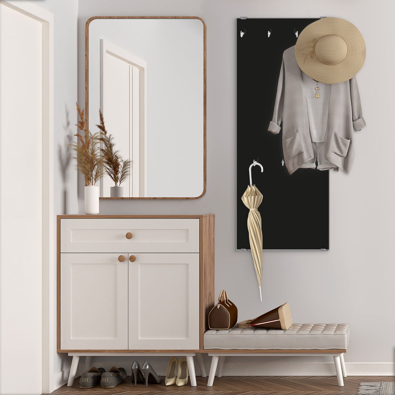 - Haken: 7 Stück, 5cm tief, auch für schwere Mäntel geeignet