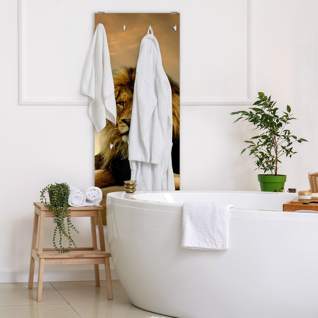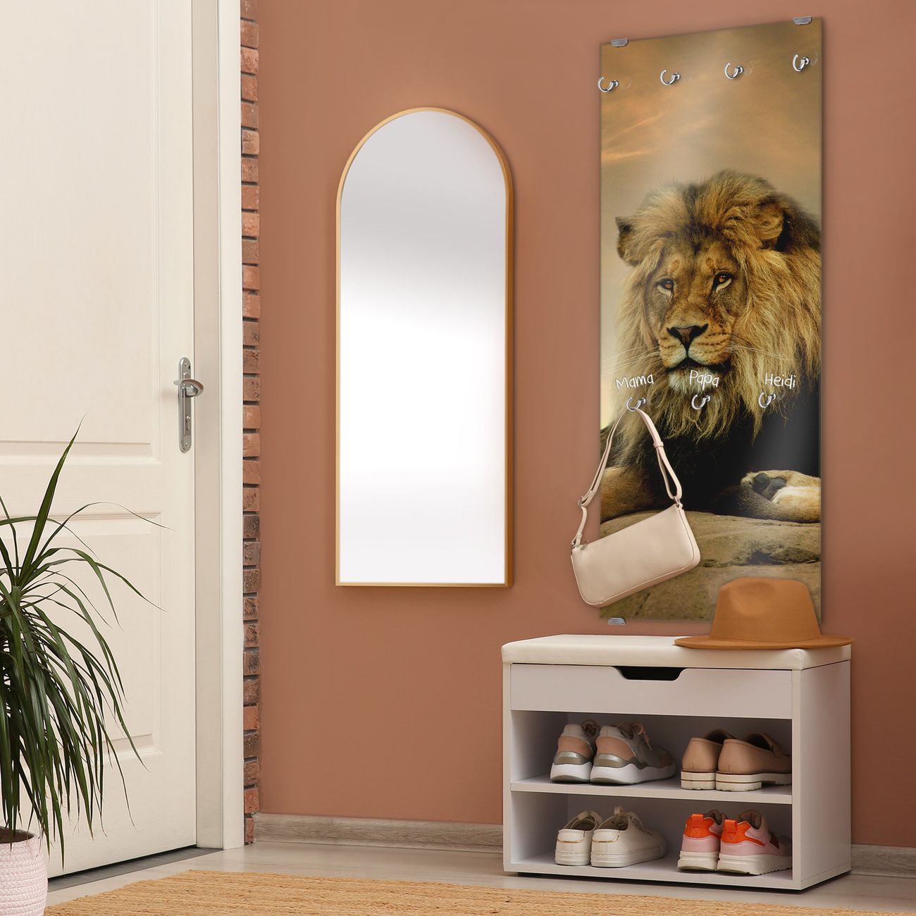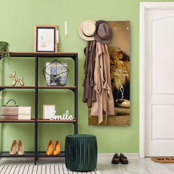 FUNKTION: Die banjado Wandgarderobe mit Motiv Adrian ist Ihr täglicher Begleiter. Zuverlässig hängen hier Ihre Jacken und Mäntel griffbereit. Das Echtglas ist Ihr Paneel auch beschreibbar und wieder abwischbar. DESIGN: Sie erhalten eine Garderobenleiste aus elegantem Echtglas mit dem Farbbrillanten Motiv Adrian hinterklebt. Das Design ist zeitlos klassisch, ohne dabei auf Funktionalität zu verzichten. Suchen Sie aus einer Vielzahl von Motiven das für Ihre Einrichtung Passende aus. DETAILS: Die Flurgarderobe besteht aus 4mm gehärtetem Sicherheitsglas. Sie ist 50cm breit, 125cm hoch und 6cm tief. Die Garderobenhaken zur Selbstmontage präsentieren sich in Edelstahl-Optik, ebenso die Abstandshalter für die Wandmontage. Ihre neue Garderobe ist sofort einsatzbereit. NUTZEN: Ihre neue Garderobe hält nicht nur zuverlässig Ihre Kleidung, sie ist auch optisch ein Blickfang. Durch das Glas können Sie an der Garderobe mit wasserlöslichen Kreidestiften oder Whiteboard-Markern auch Nachrichten hinterlassen. BANJADO: Wir sind ein kleines kreatives Team aus Sachsen und entwickeln Produkte die Design und Funktionalität verbinden sollen. Viel Freude mit Ihrer neuen Garderobe wünscht das banjado-Team!