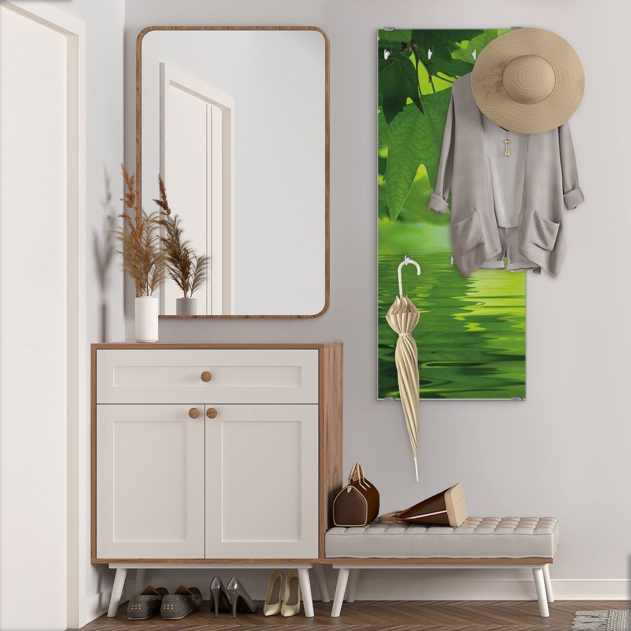 Flurgarderobe Glas 50x125cm Motiv Blättertraum