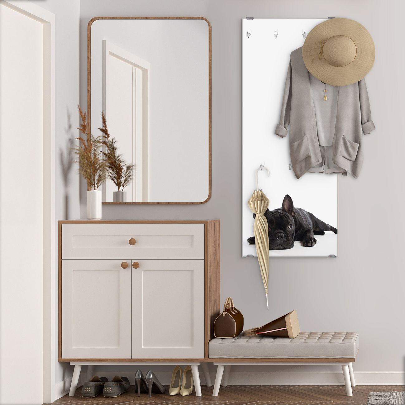 Flurgarderobe Glas 50x125cm Motiv Bulldogge