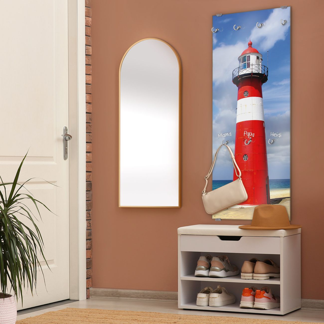 FUNKTION: Die banjado Wandgarderobe mit Motiv Leuchtturm Westkapelle ist Ihr täglicher Begleiter. Zuverlässig hängen hier Ihre Jacken und Mäntel griffbereit. Das Echtglas ist Ihr Paneel auch beschreibbar und wieder abwischbar. DESIGN: Sie erhalten eine Garderobenleiste aus elegantem Echtglas mit dem Farbbrillanten Motiv Leuchtturm Westkapelle hinterklebt. Das Design ist zeitlos klassisch, ohne dabei auf Funktionalität zu verzichten. Suchen Sie aus einer Vielzahl von Motiven das für Ihre Einrichtung Passende aus. DETAILS: Die Flurgarderobe besteht aus 4mm gehärtetem Sicherheitsglas. Sie ist 50cm breit, 125cm hoch und 6cm tief. Die Garderobenhaken zur Selbstmontage präsentieren sich in Edelstahl-Optik, ebenso die Abstandshalter für die Wandmontage. Ihre neue Garderobe ist sofort einsatzbereit. NUTZEN: Ihre neue Garderobe hält nicht nur zuverlässig Ihre Kleidung, sie ist auch optisch ein Blickfang. Durch das Glas können Sie an der Garderobe mit wasserlöslichen Kreidestiften oder Whiteboard-Markern auch Nachrichten hinterlassen. BANJADO: Wir sind ein kleines kreatives Team aus Sachsen und entwickeln Produkte die Design und Funktionalität verbinden sollen. Viel Freude mit Ihrer neuen Garderobe wünscht das banjado-Team!
