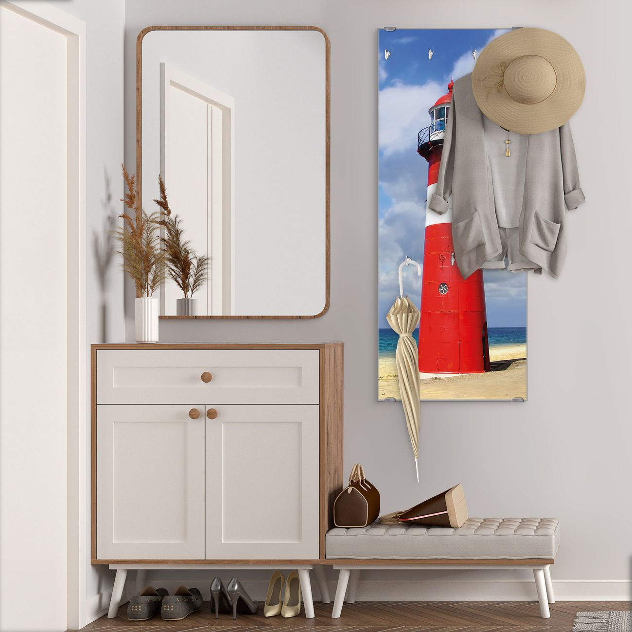 Flurgarderobe Glas 50x125cm Motiv Leuchtturm Westkapelle