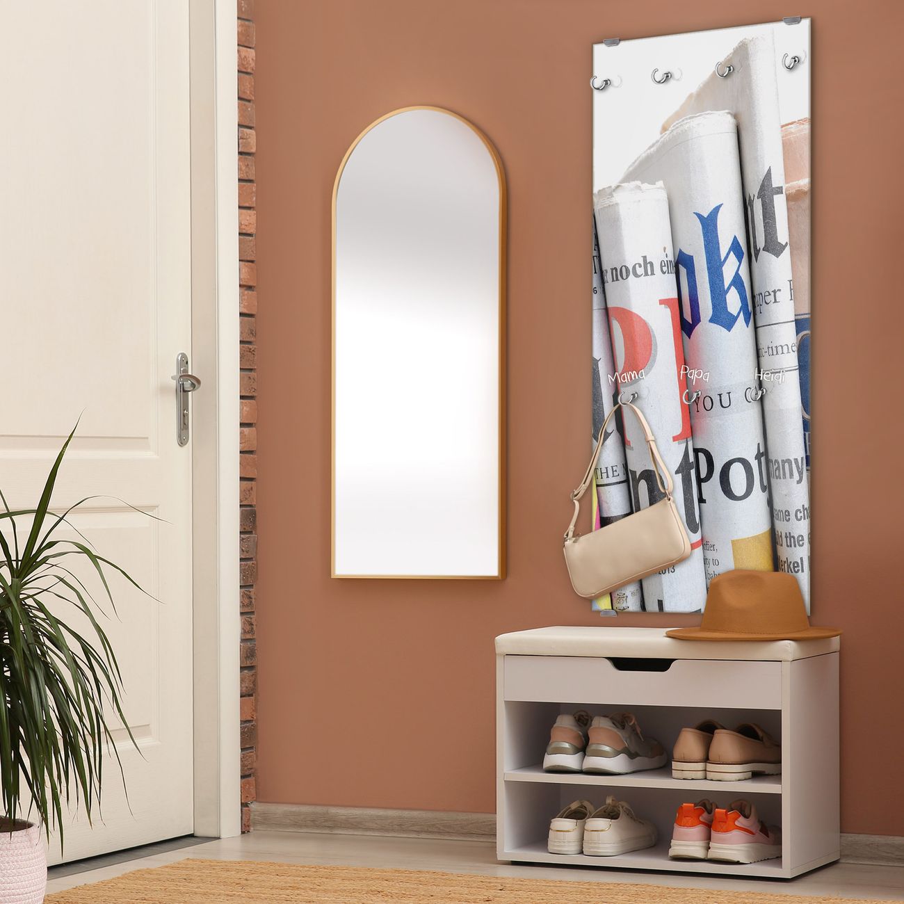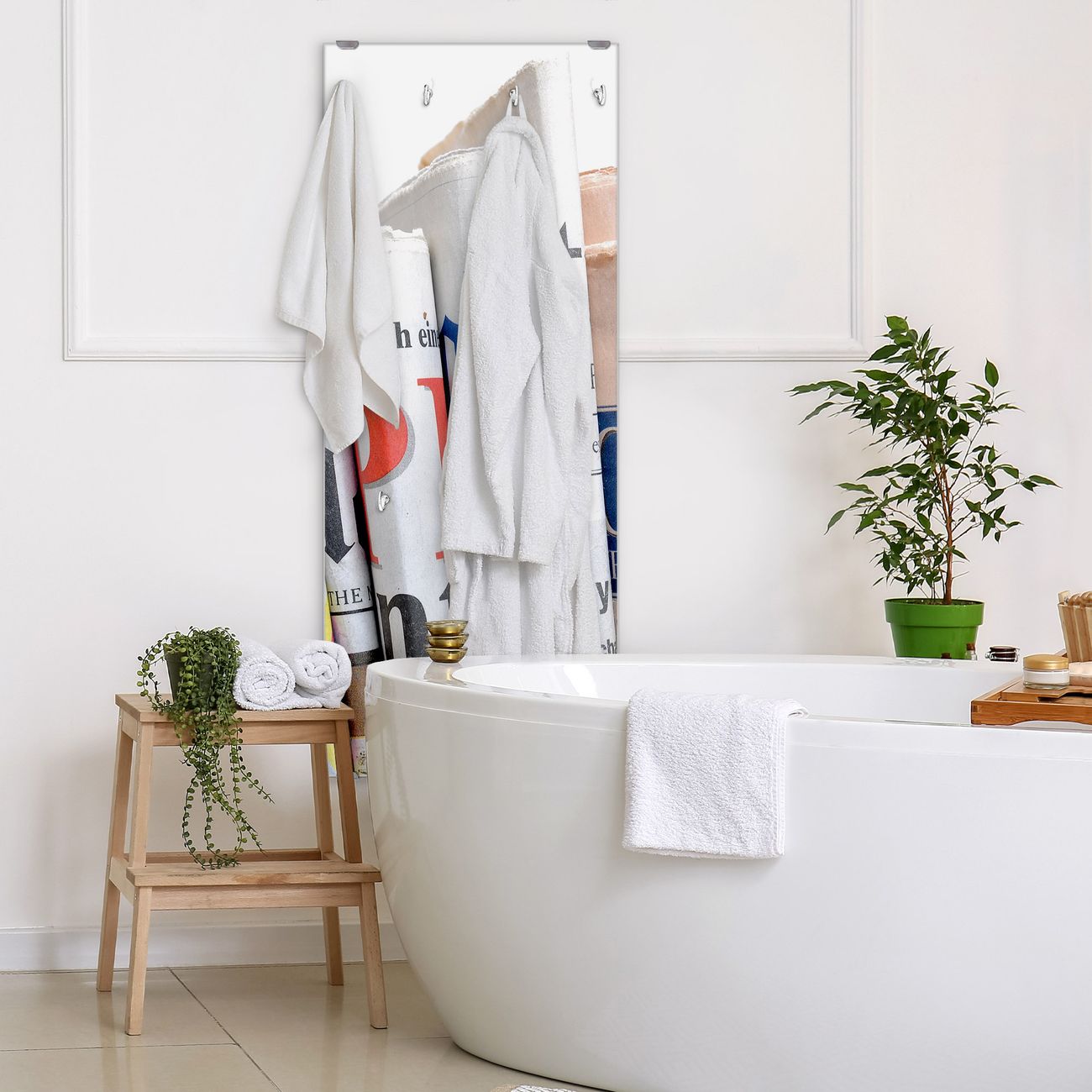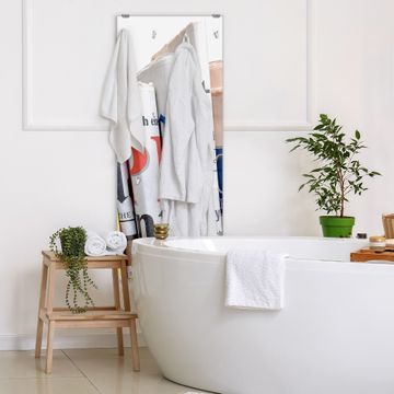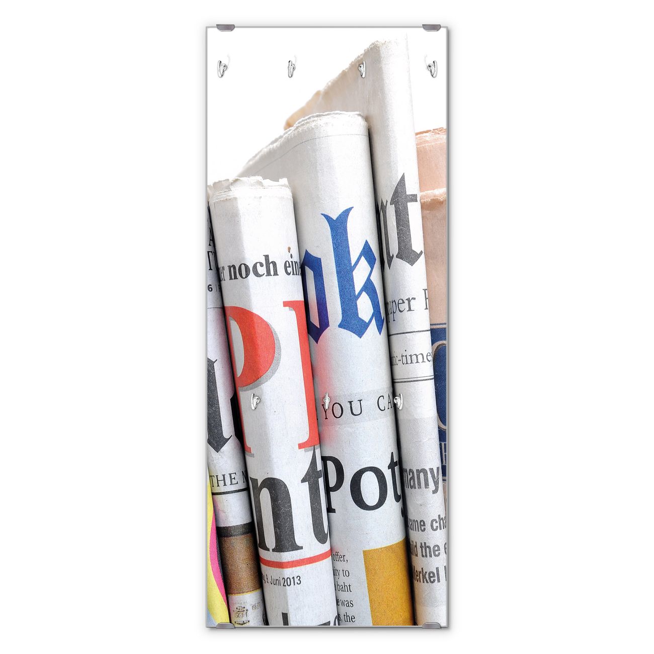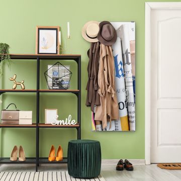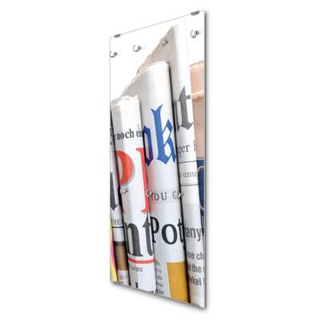 FUNKTION: Die banjado Wandgarderobe mit Motiv Presse ist Ihr täglicher Begleiter. Zuverlässig hängen hier Ihre Jacken und Mäntel griffbereit. Das Echtglas ist Ihr Paneel auch beschreibbar und wieder abwischbar. DESIGN: Sie erhalten eine Garderobenleiste aus elegantem Echtglas mit dem Farbbrillanten Motiv Presse hinterklebt. Das Design ist zeitlos klassisch, ohne dabei auf Funktionalität zu verzichten. Suchen Sie aus einer Vielzahl von Motiven das für Ihre Einrichtung Passende aus. DETAILS: Die Flurgarderobe besteht aus 4mm gehärtetem Sicherheitsglas. Sie ist 50cm breit, 125cm hoch und 6cm tief. Die Garderobenhaken zur Selbstmontage präsentieren sich in Edelstahl-Optik, ebenso die Abstandshalter für die Wandmontage. Ihre neue Garderobe ist sofort einsatzbereit. NUTZEN: Ihre neue Garderobe hält nicht nur zuverlässig Ihre Kleidung, sie ist auch optisch ein Blickfang. Durch das Glas können Sie an der Garderobe mit wasserlöslichen Kreidestiften oder Whiteboard-Markern auch Nachrichten hinterlassen. BANJADO: Wir sind ein kleines kreatives Team aus Sachsen und entwickeln Produkte die Design und Funktionalität verbinden sollen. Viel Freude mit Ihrer neuen Garderobe wünscht das banjado-Team!